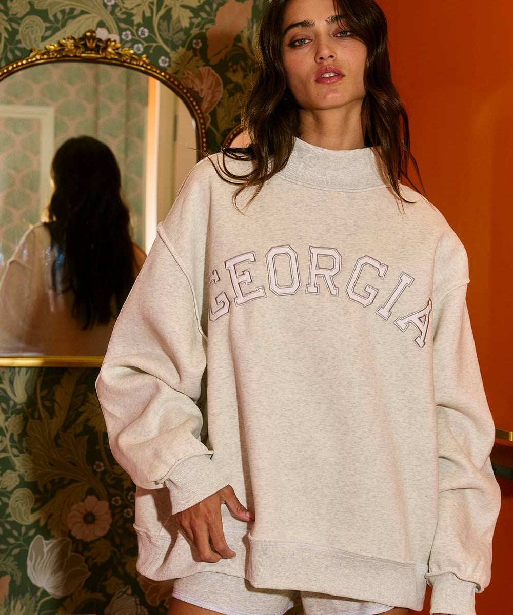 'GEORGIA' Embroidered Mock Neck Sweatshirt