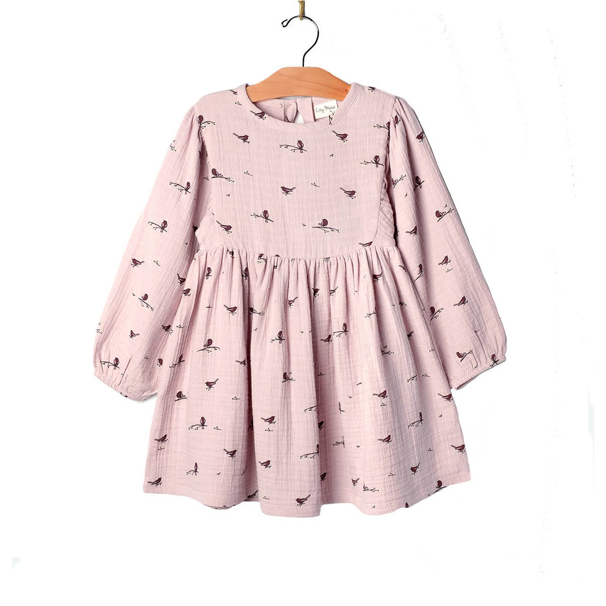 Puff Sleeve Dress: Fall Lavender Birds