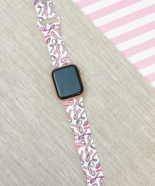 Pink Ribbon Printed Silicone Smart Watch Band - S/M