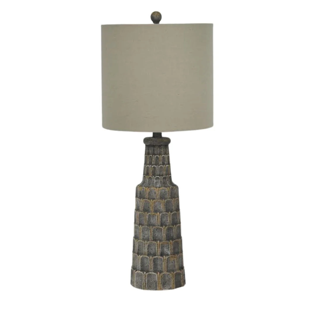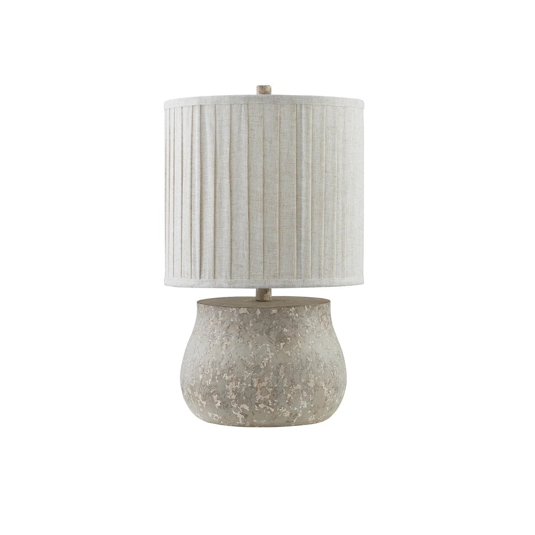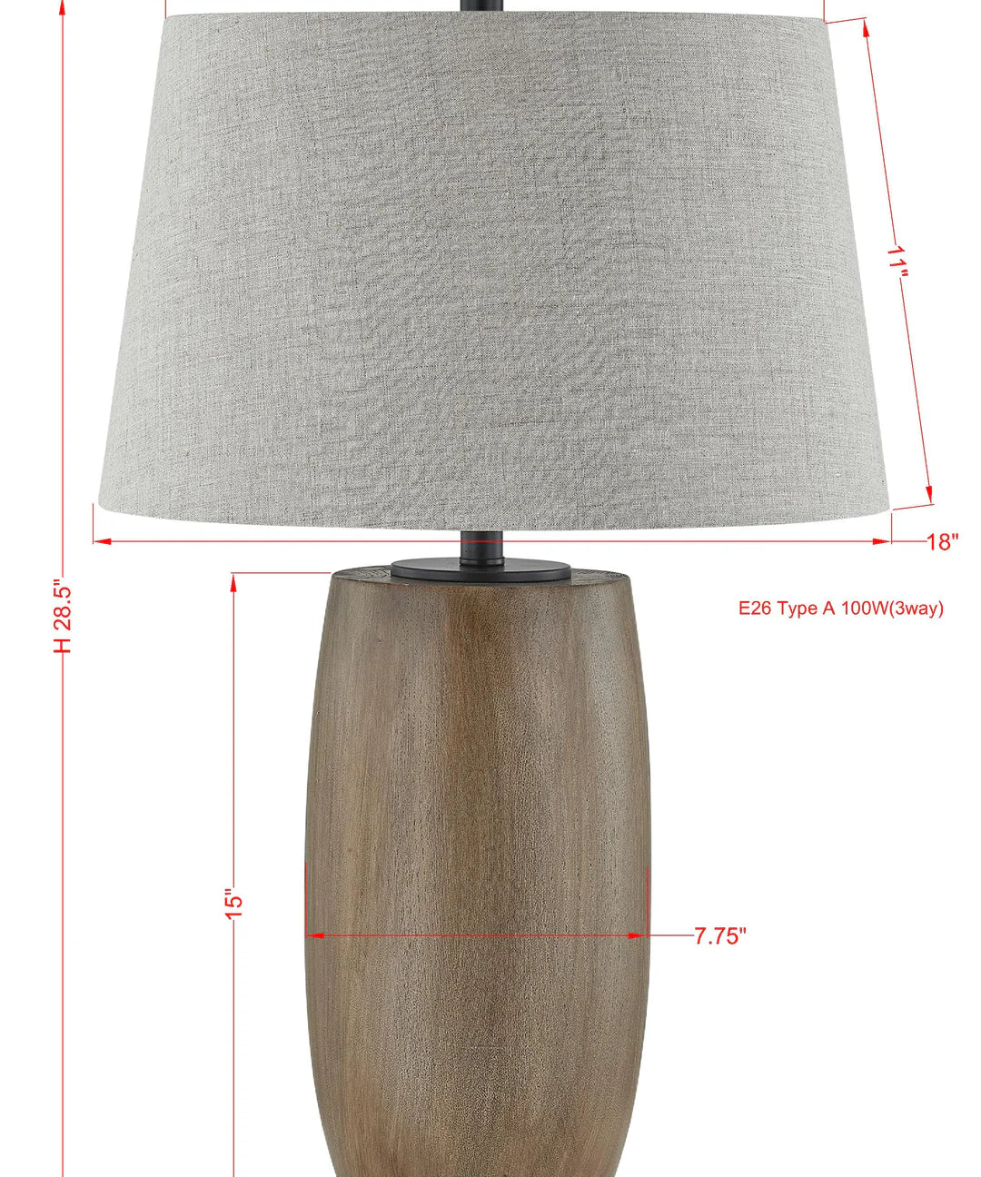 Mango Wood Pleated Table Lamp w/ Linen Shade & Inline Switch