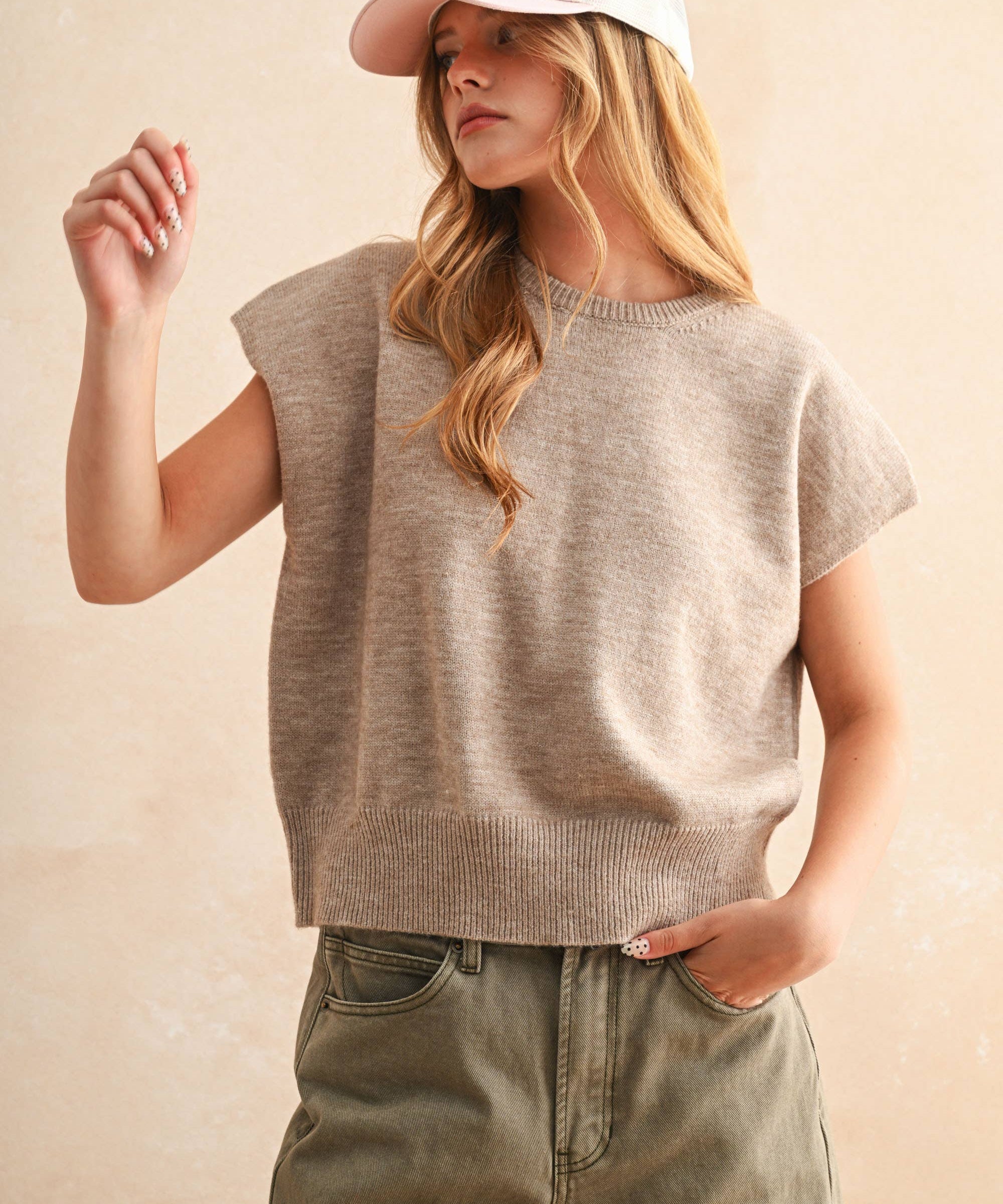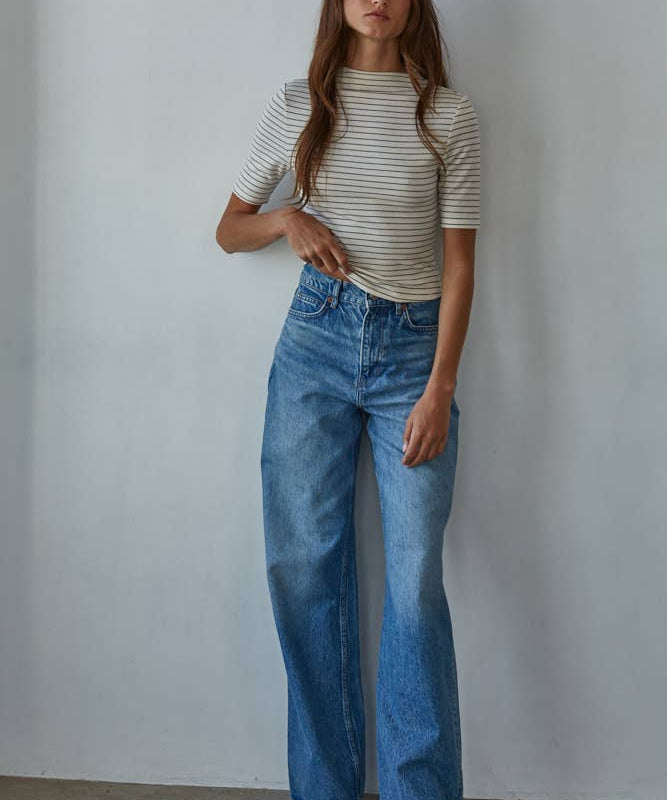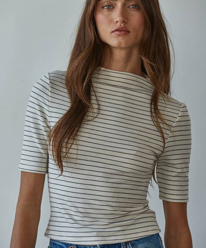 Knit Mock Neck Short Sleeve Top | Cream Black
