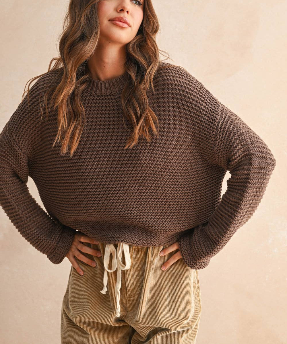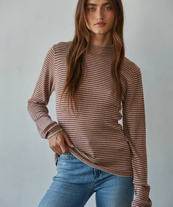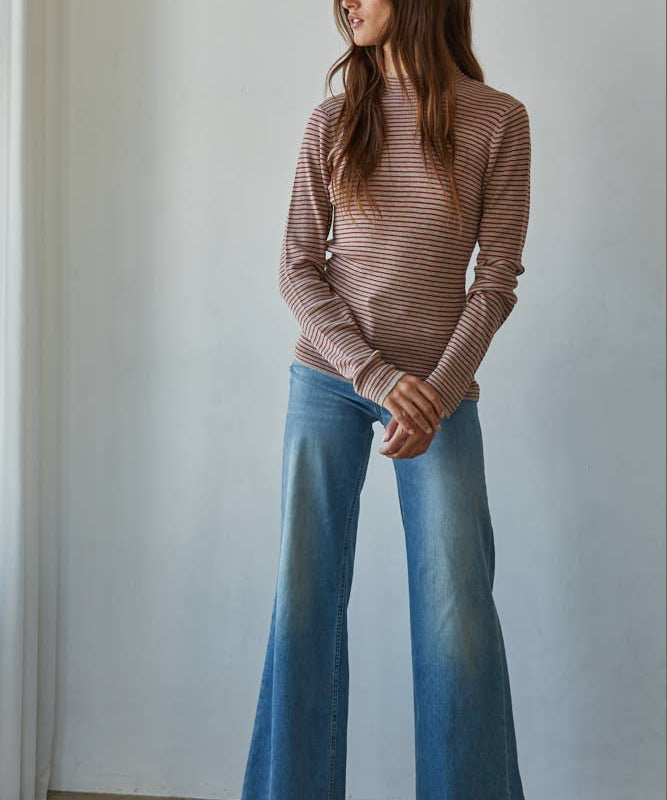 Knit Sweater Striped Mock Neck Long Sleeve Top