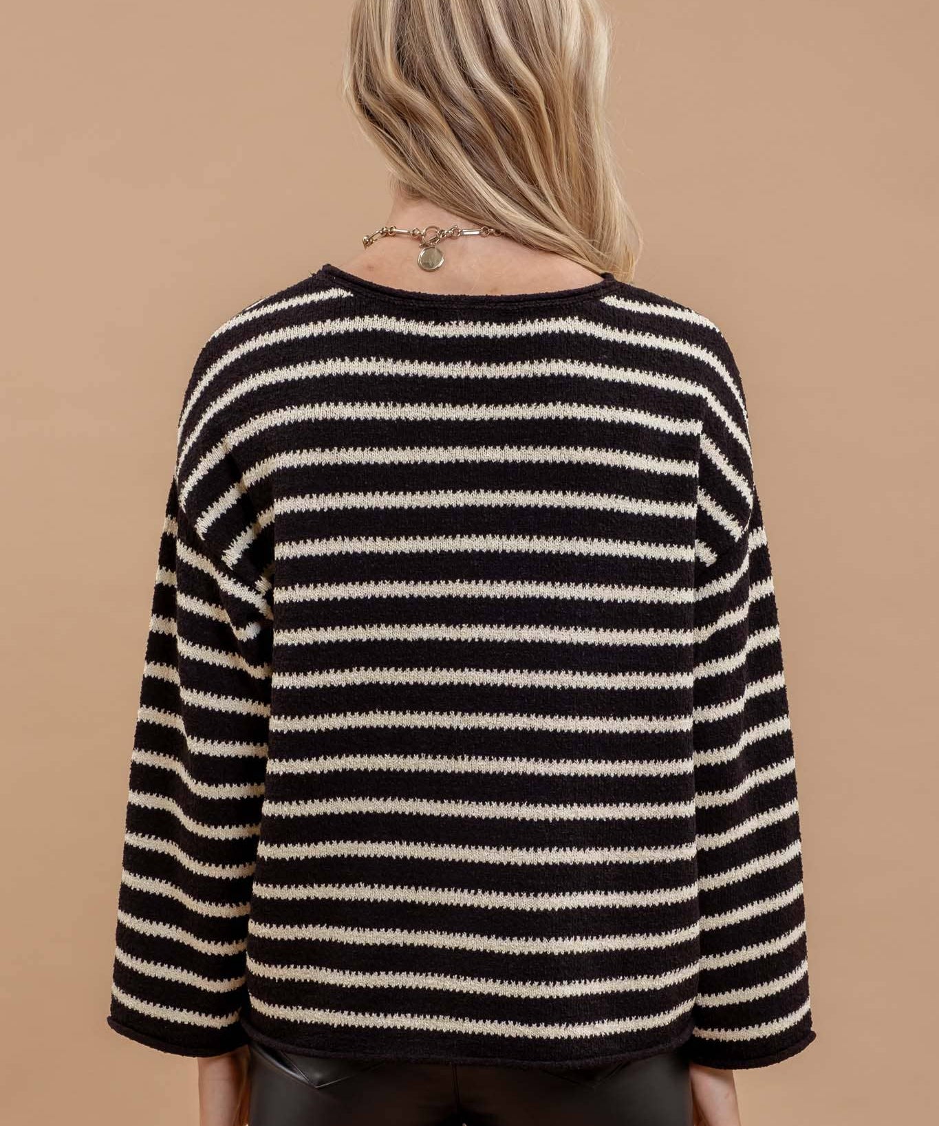 Stripe Boat Neck Drop Shoulder Sweater