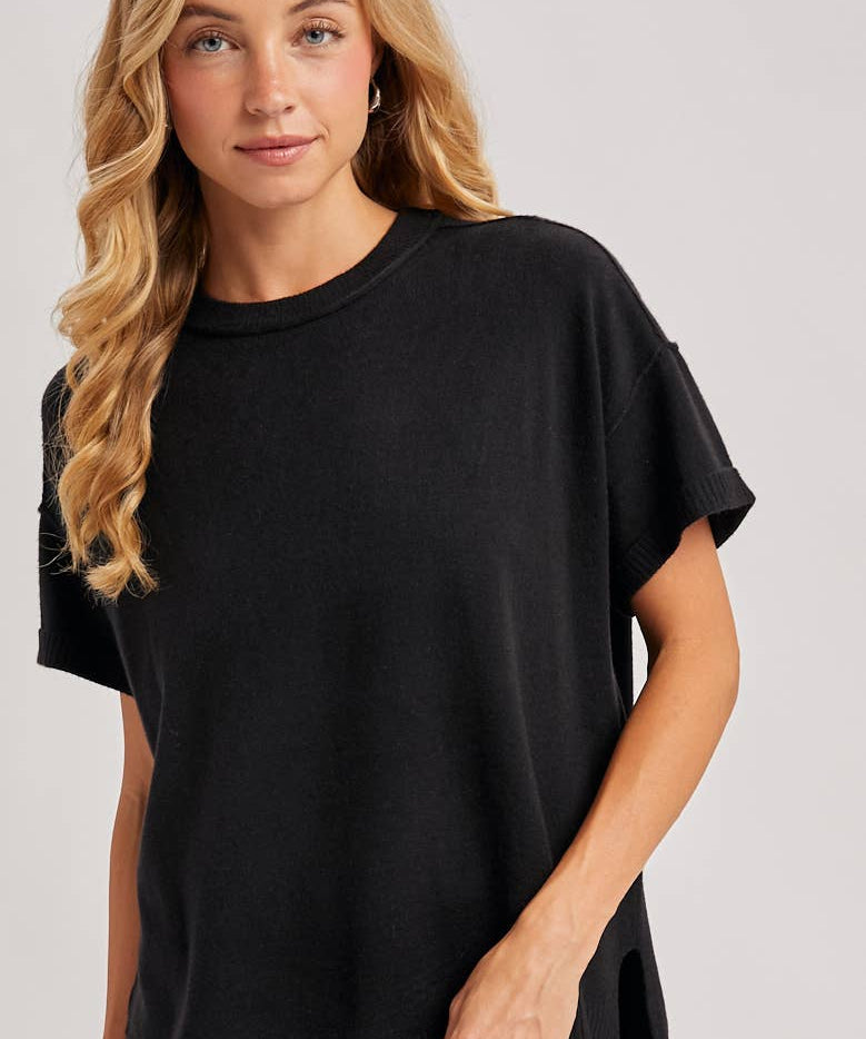 Crew Neck Knit T-shirt | Black