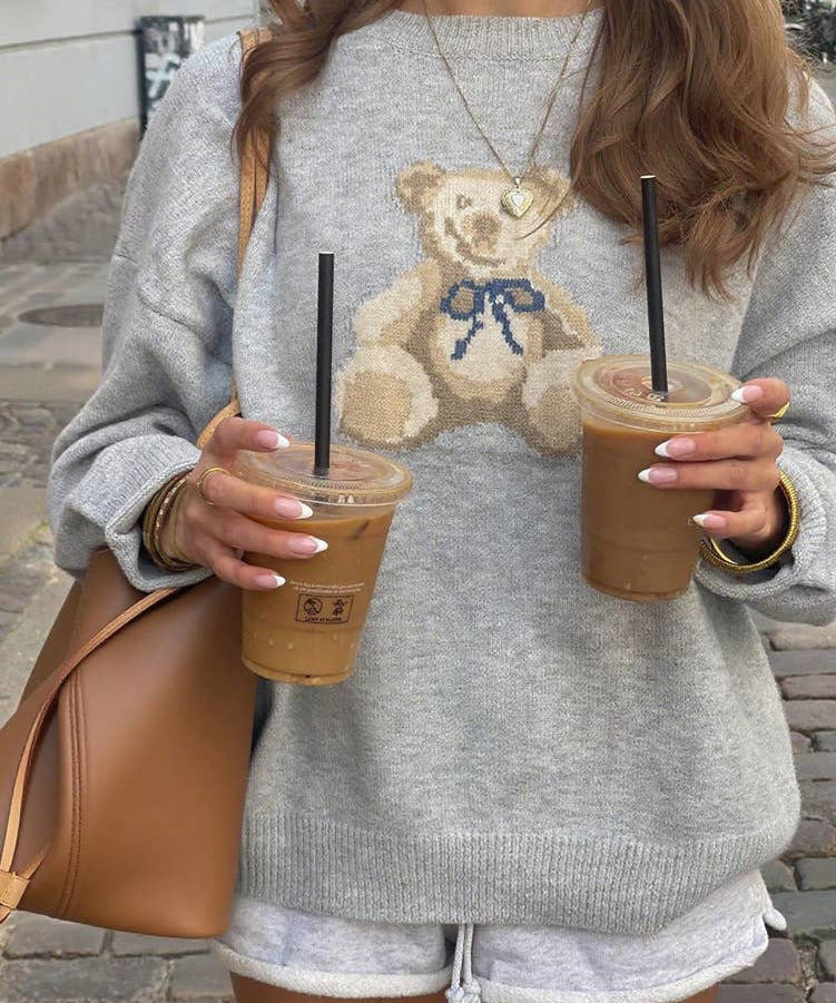 Slouchy Teddy Bear Graphic Cozy Sweater