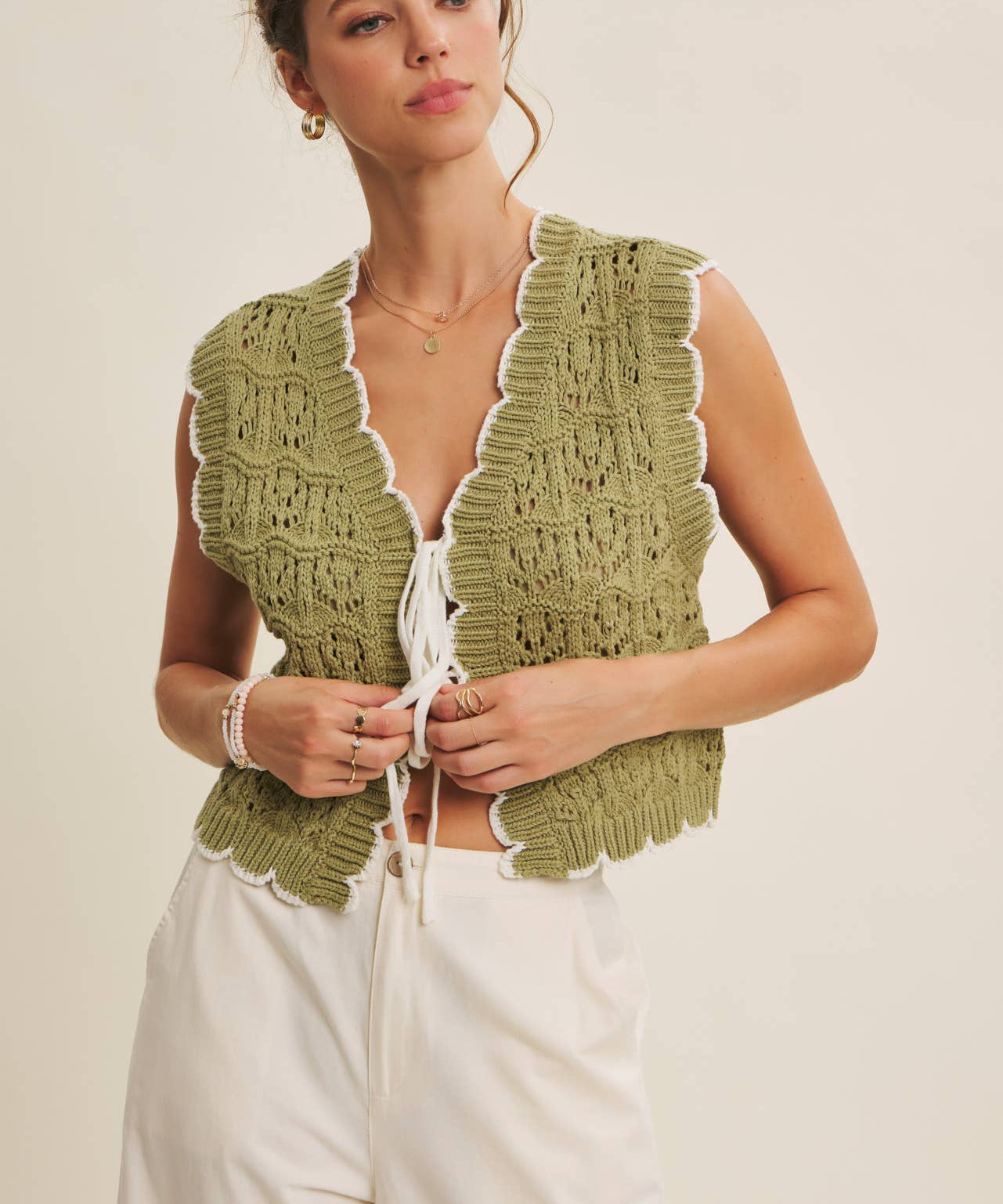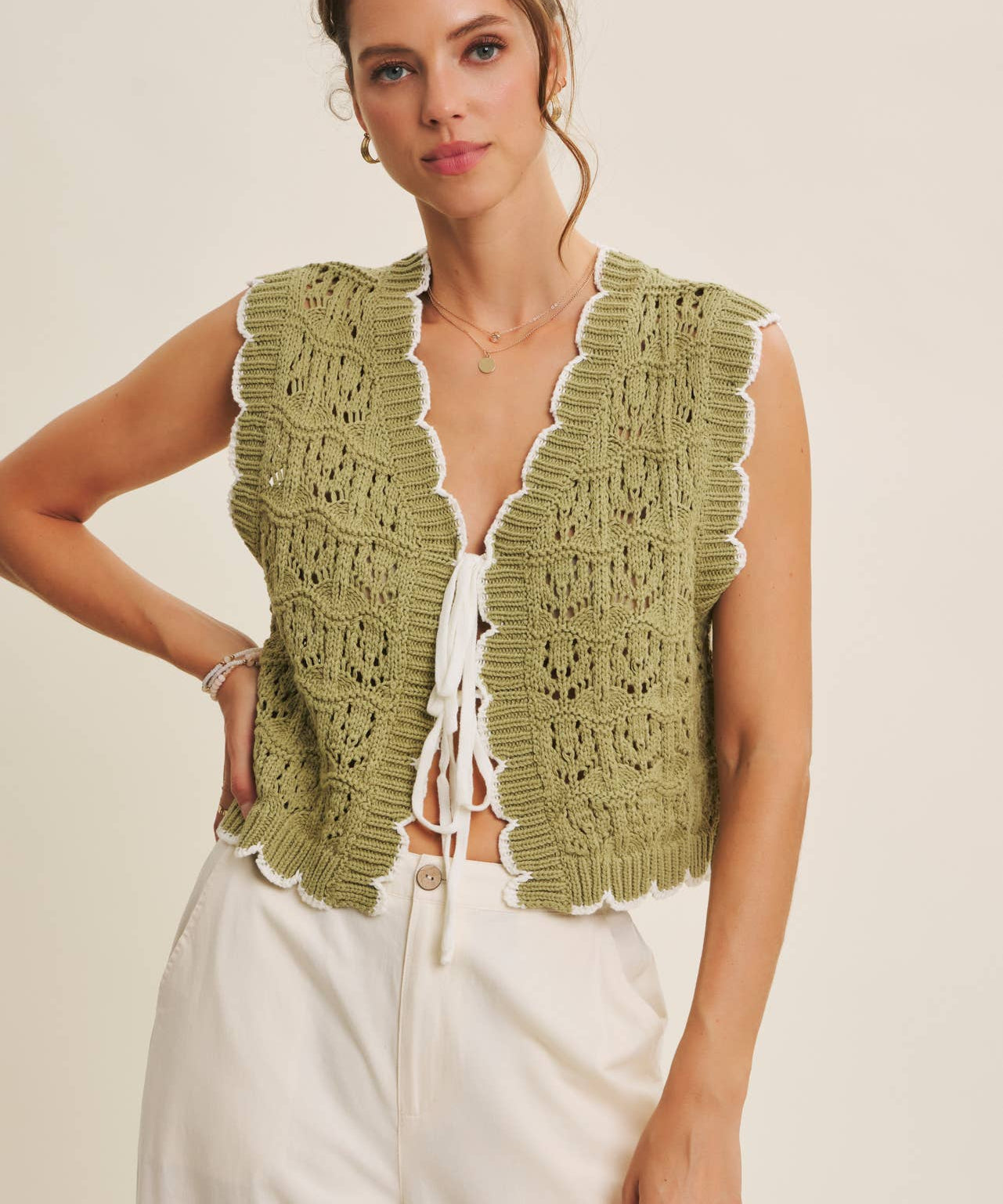 Seasonless Endlessly versatile Crochet Scallop Edge Sweater: Matcha
