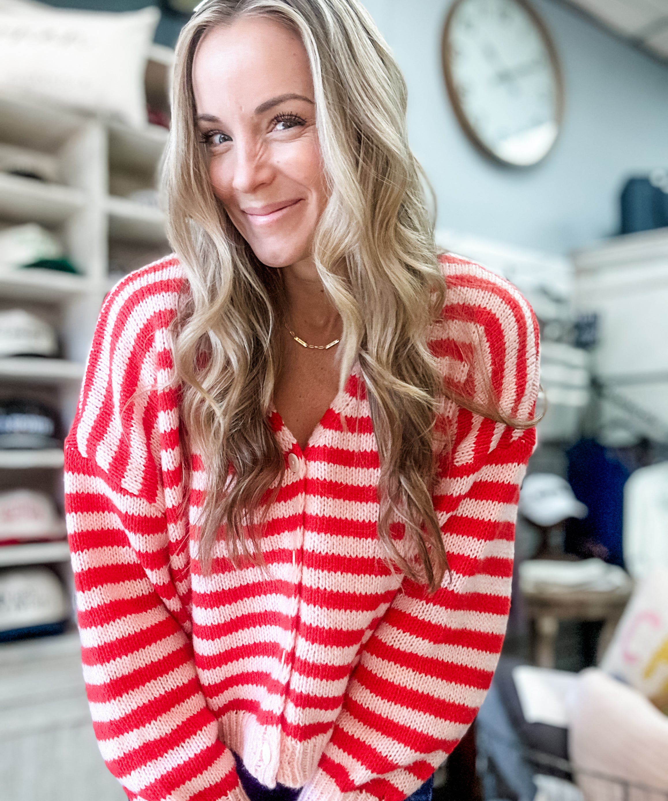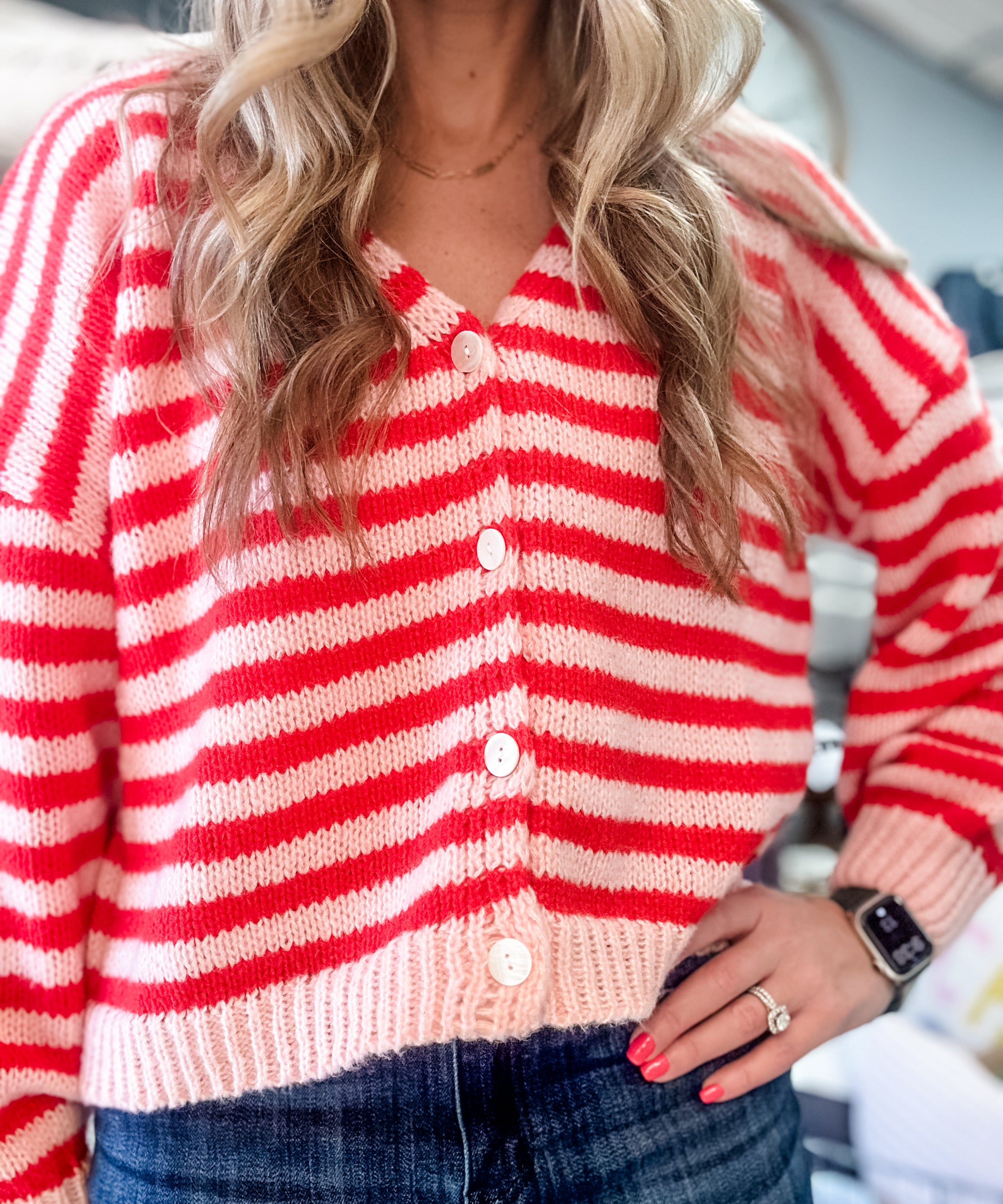 Slouchy Color Block V-Neck Striped Knit Cardigan