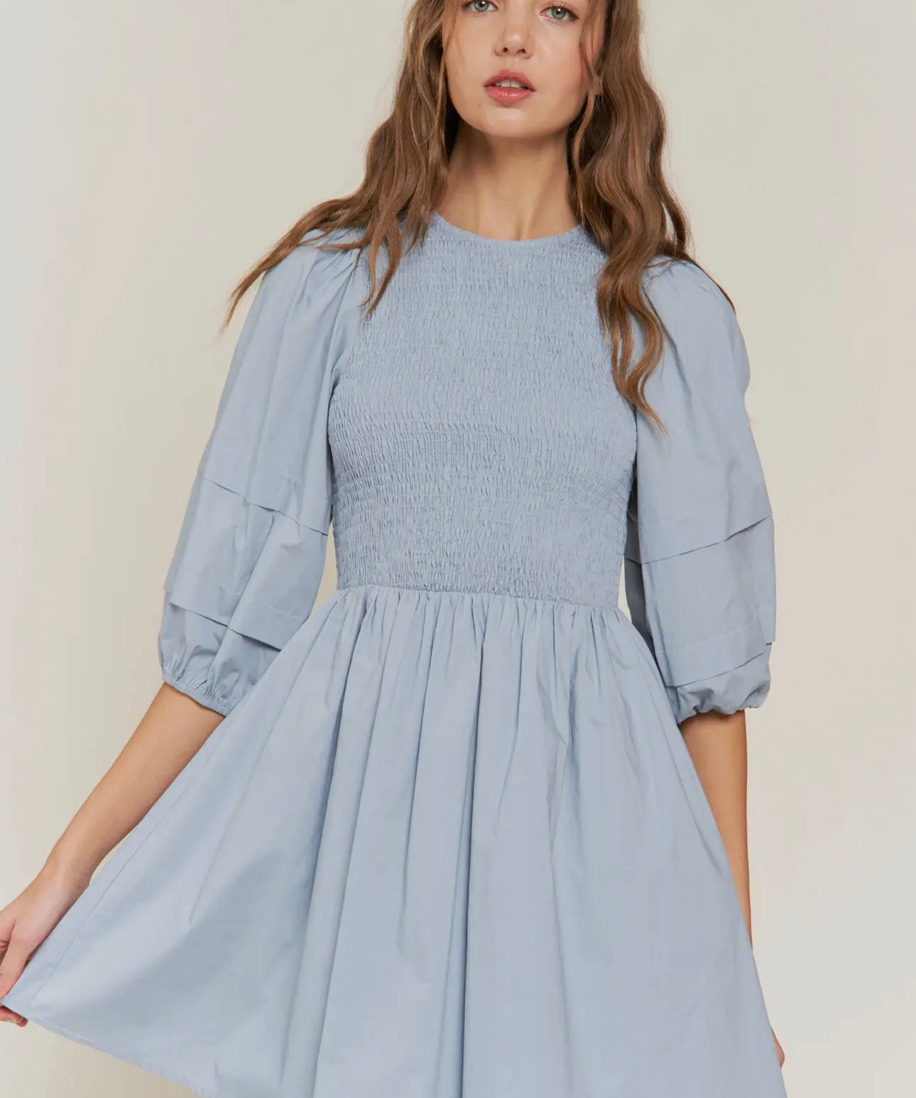 Blue Quarter Sleeve Mini Dress