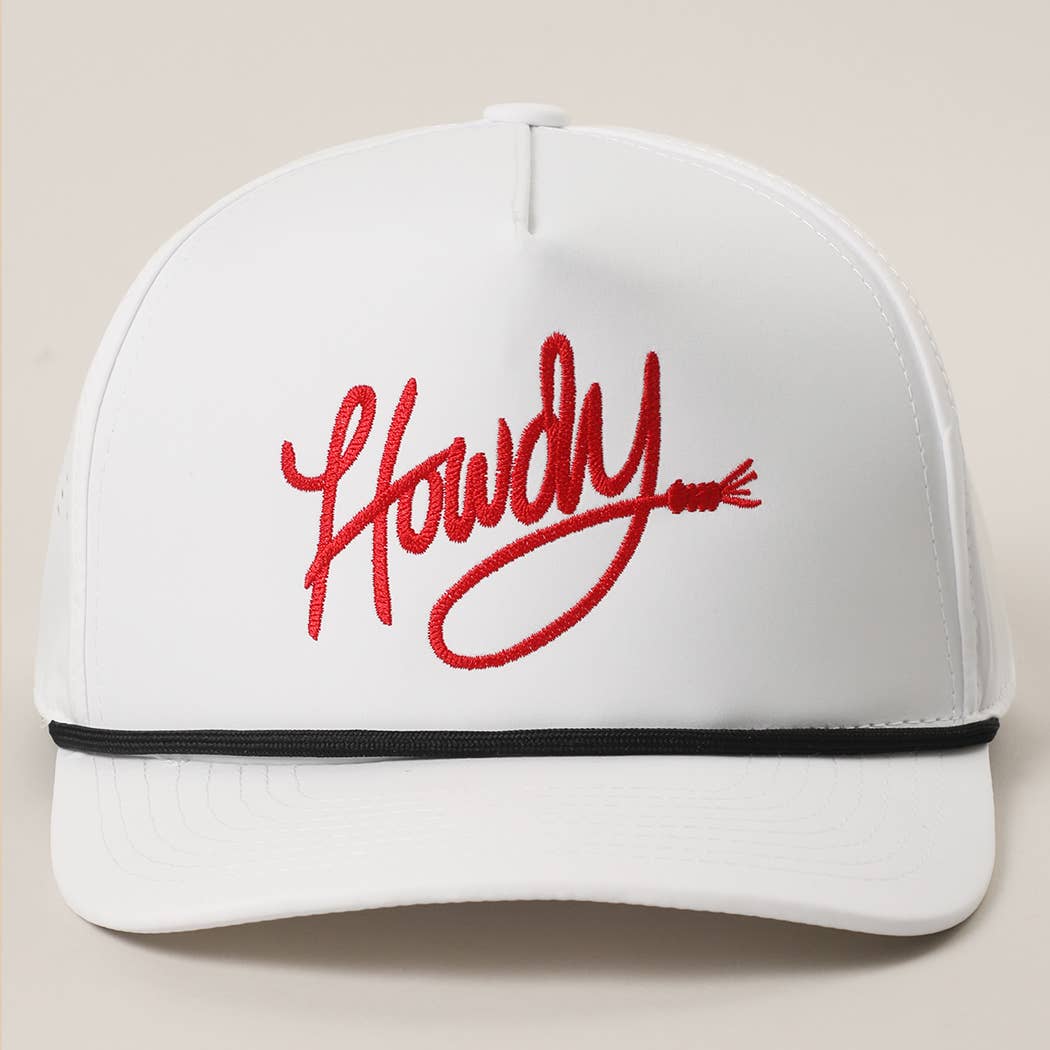 Howdy Embroidered Premium Materials Rope Strap Trucker Hat | White