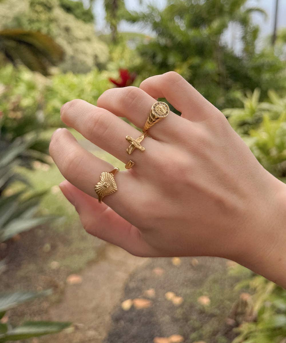 Oval Engraved Cross Ring | Gold
