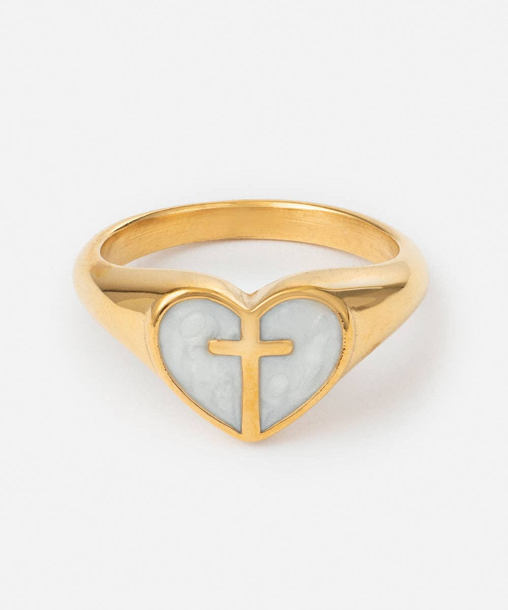 Enamel Heart Cross Ring