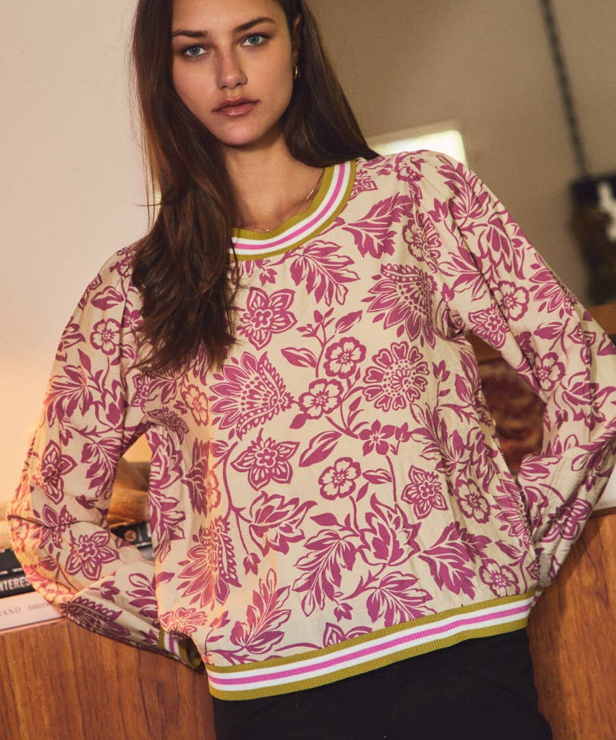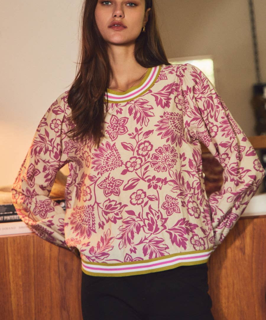Floral Print Knit Top | Orchid Wave