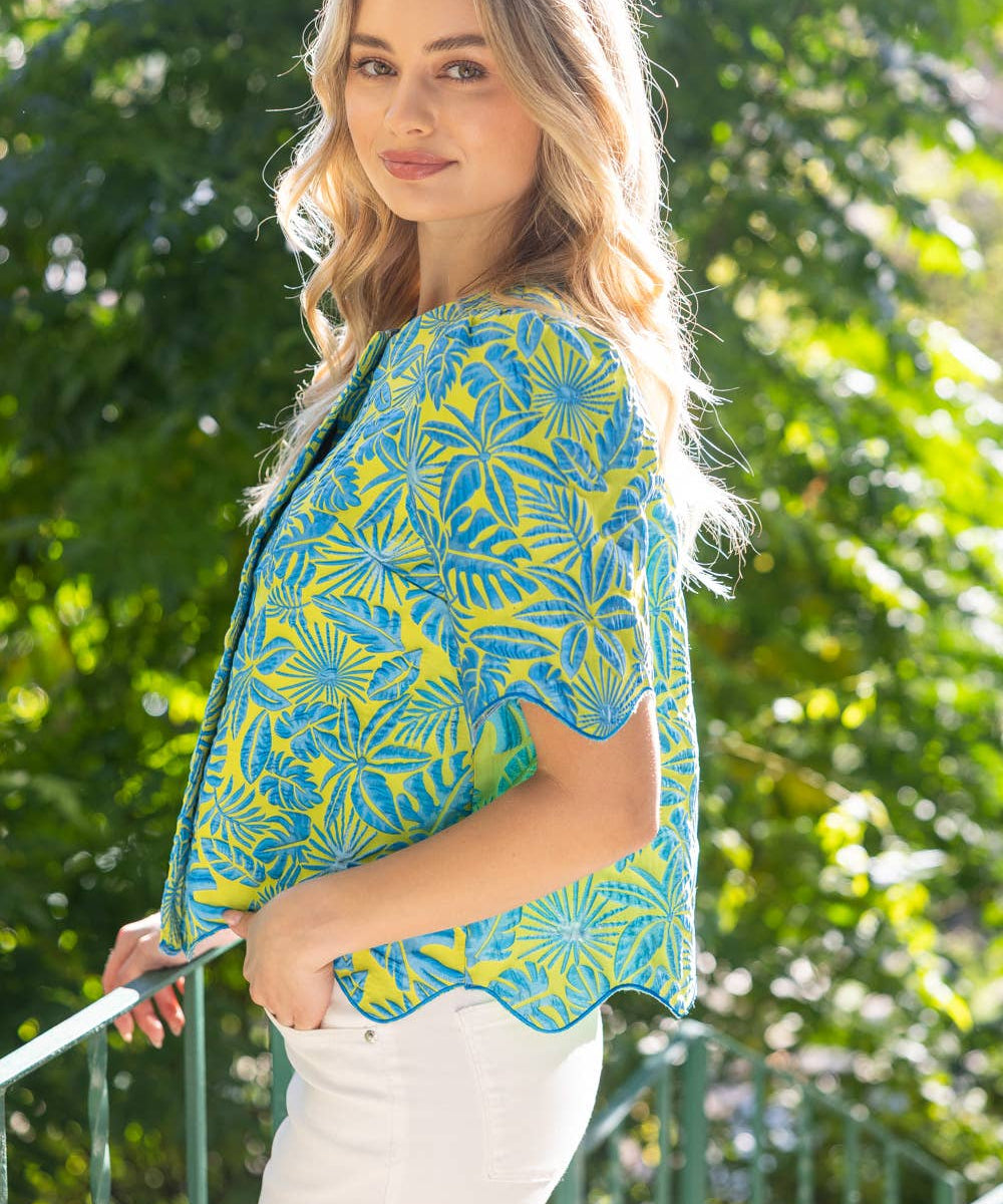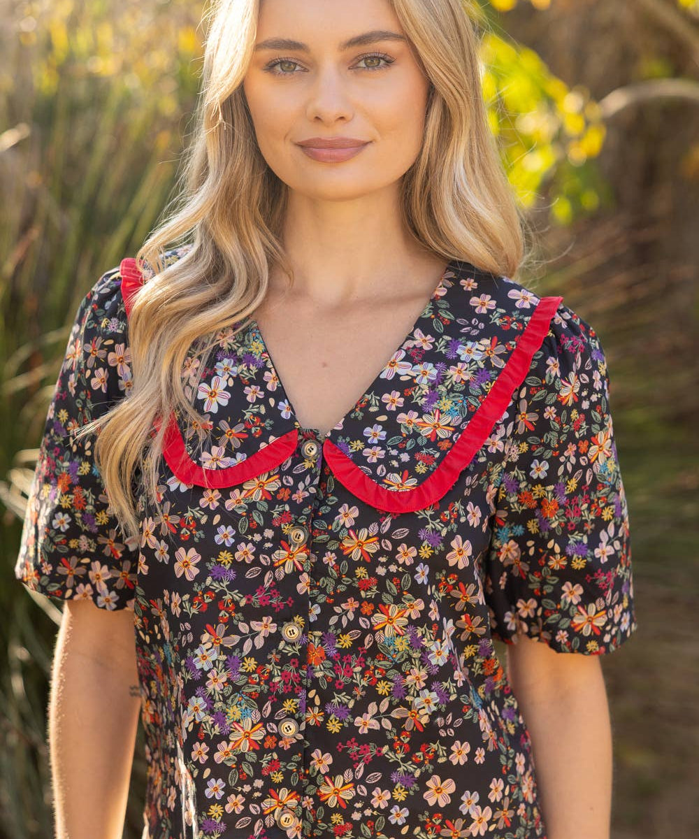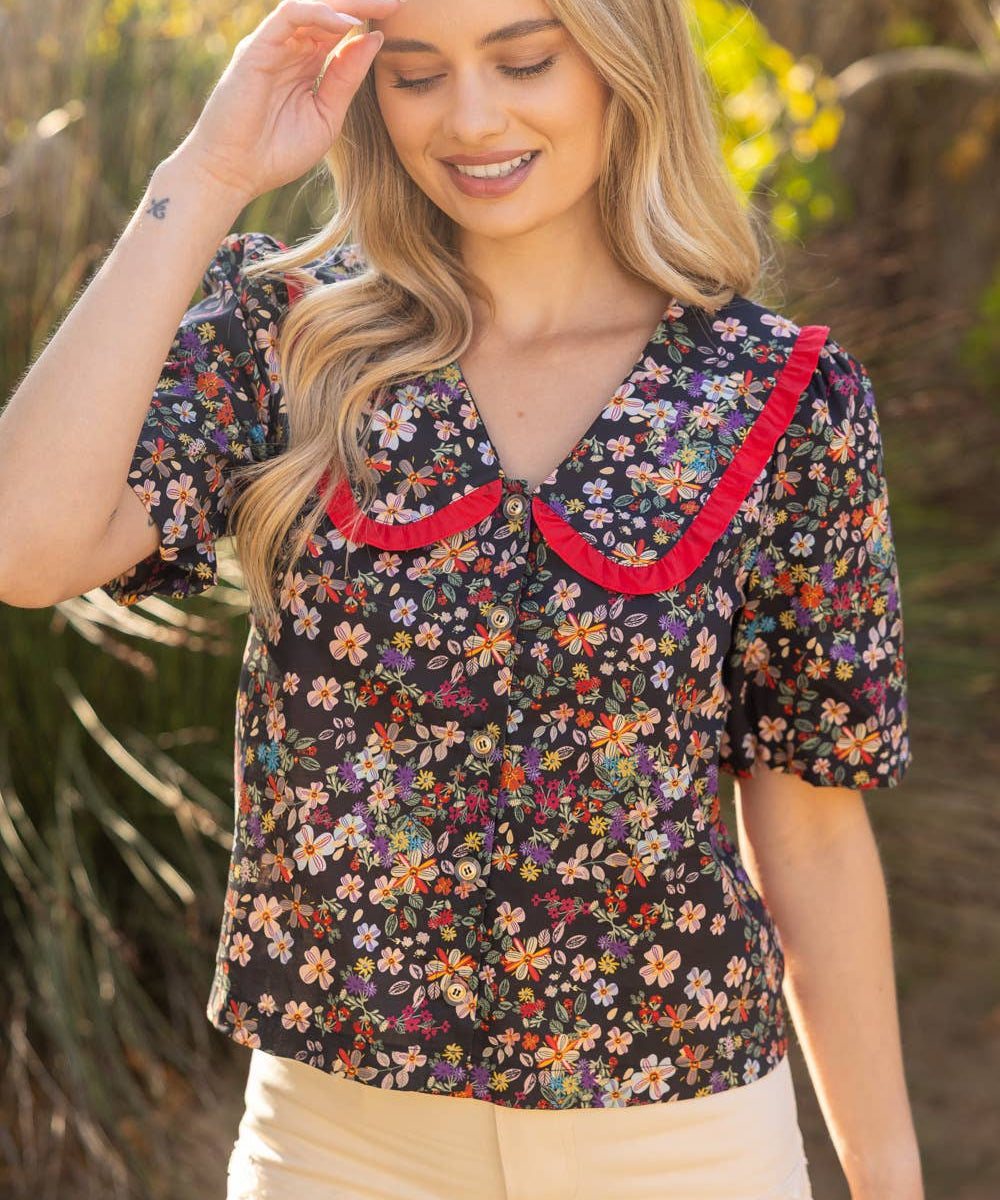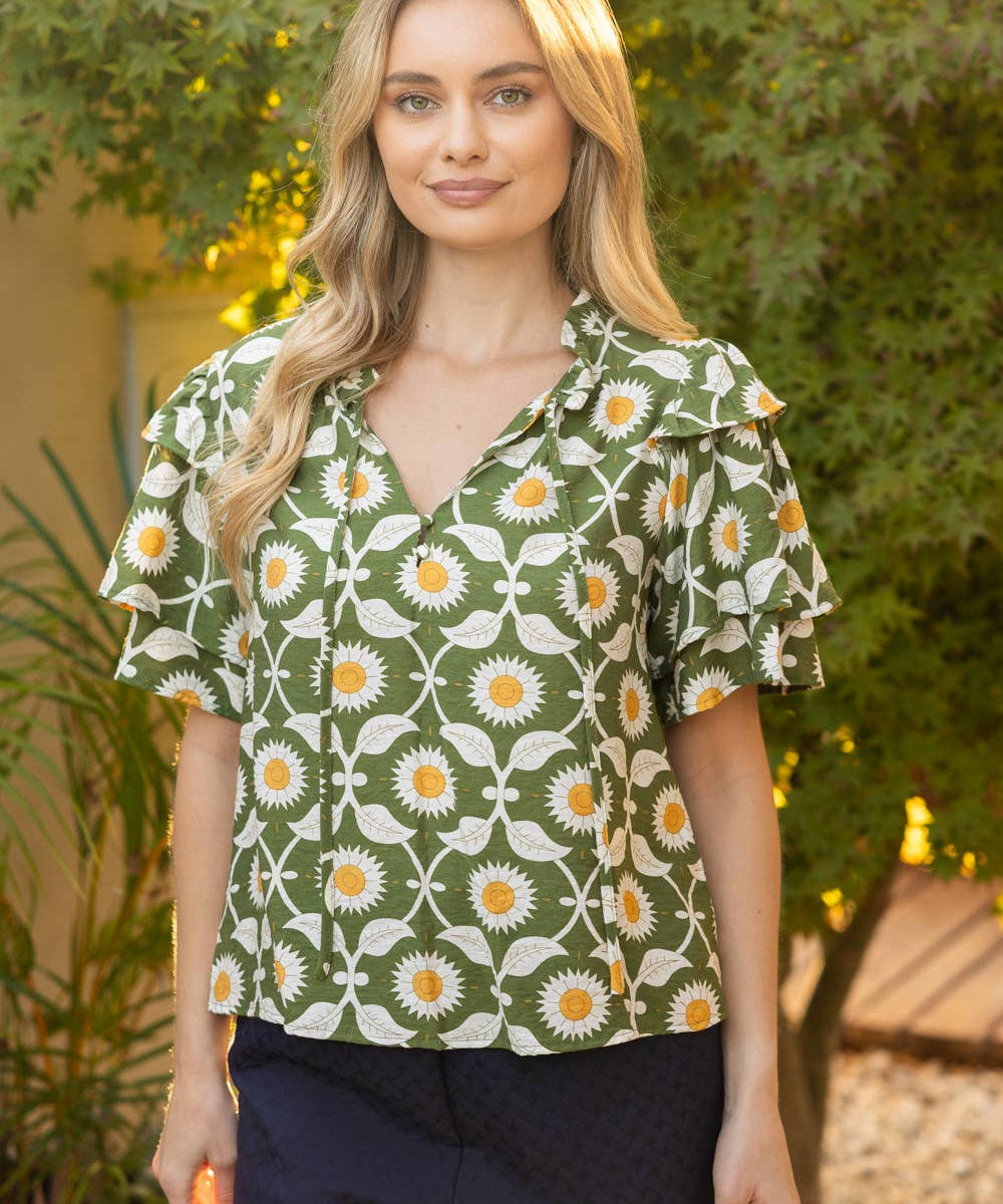 Double Ruffle Layered Short Sleeve Floral Print Top