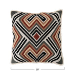 Cotton Embroidered Pillow w/ Pattern & Fringe
