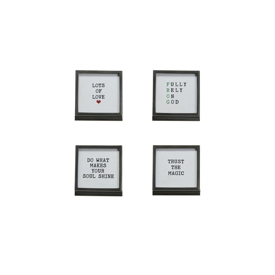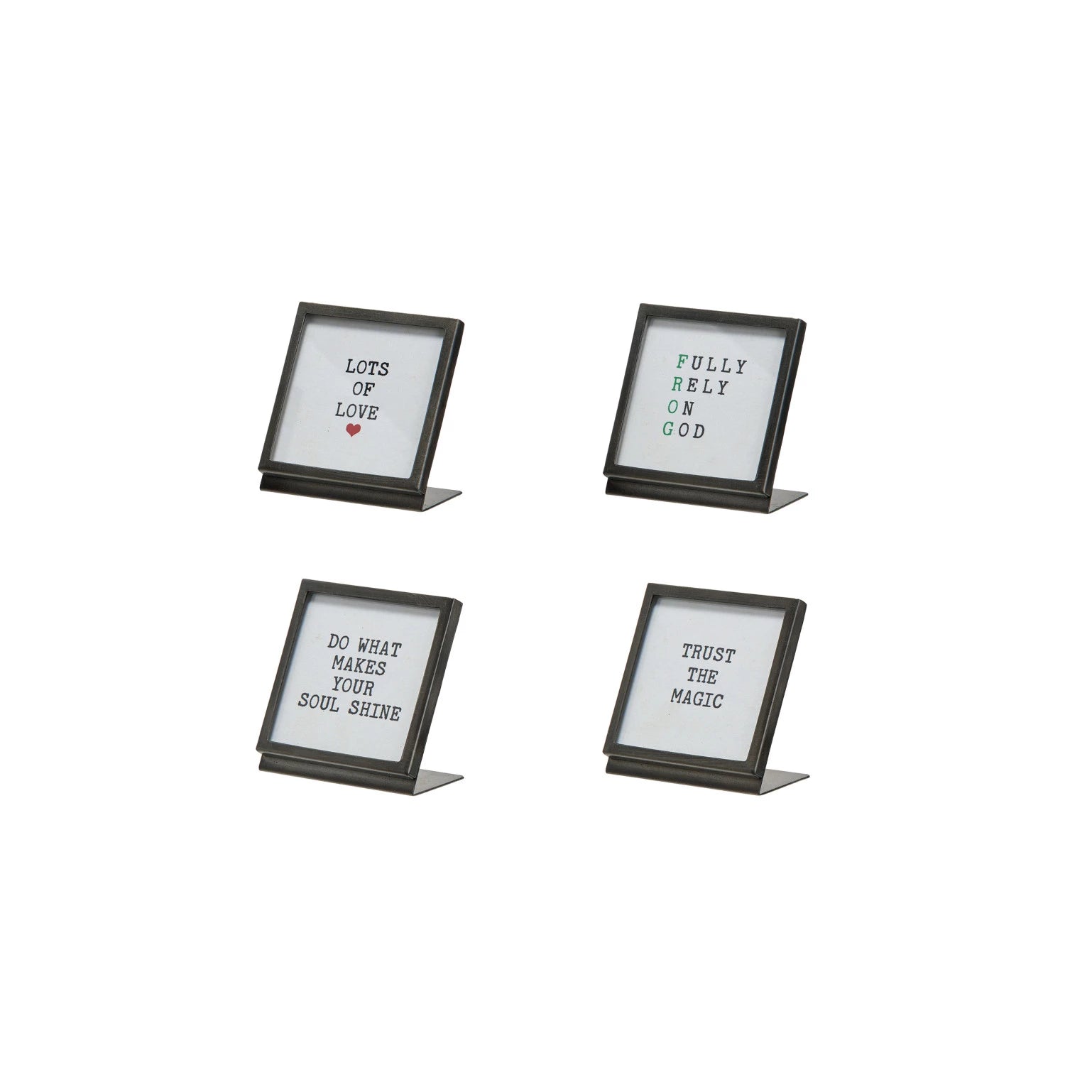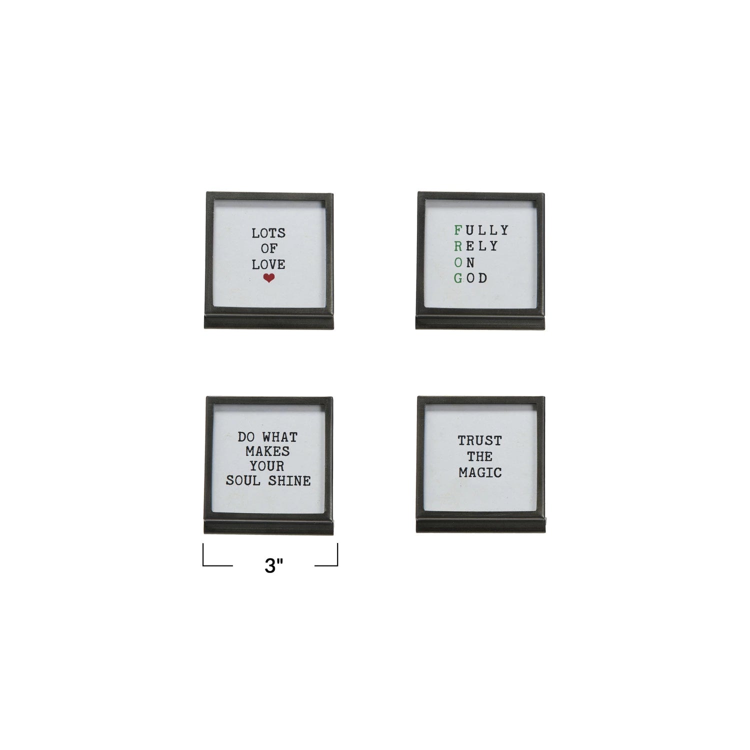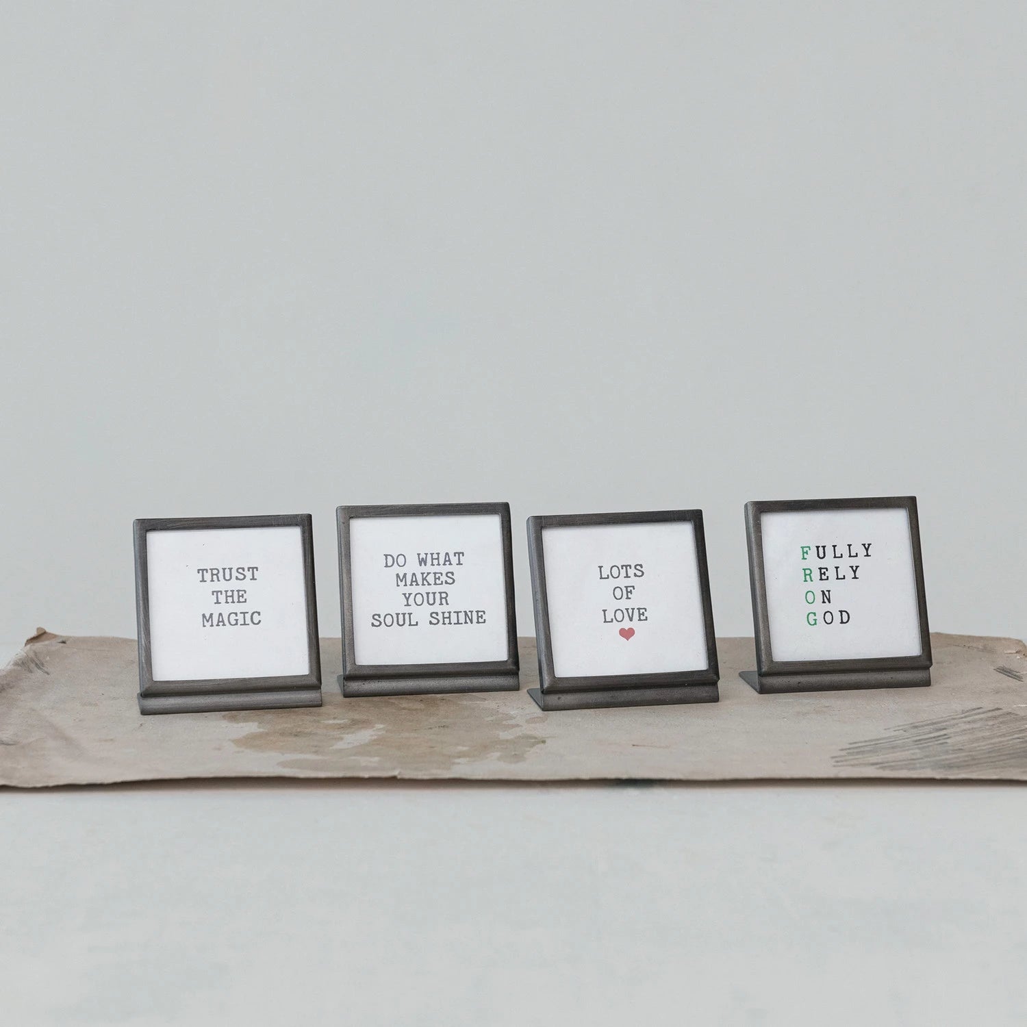 3" Square Metal & Glass Frame w/ Easel & Saying, 4 Styles