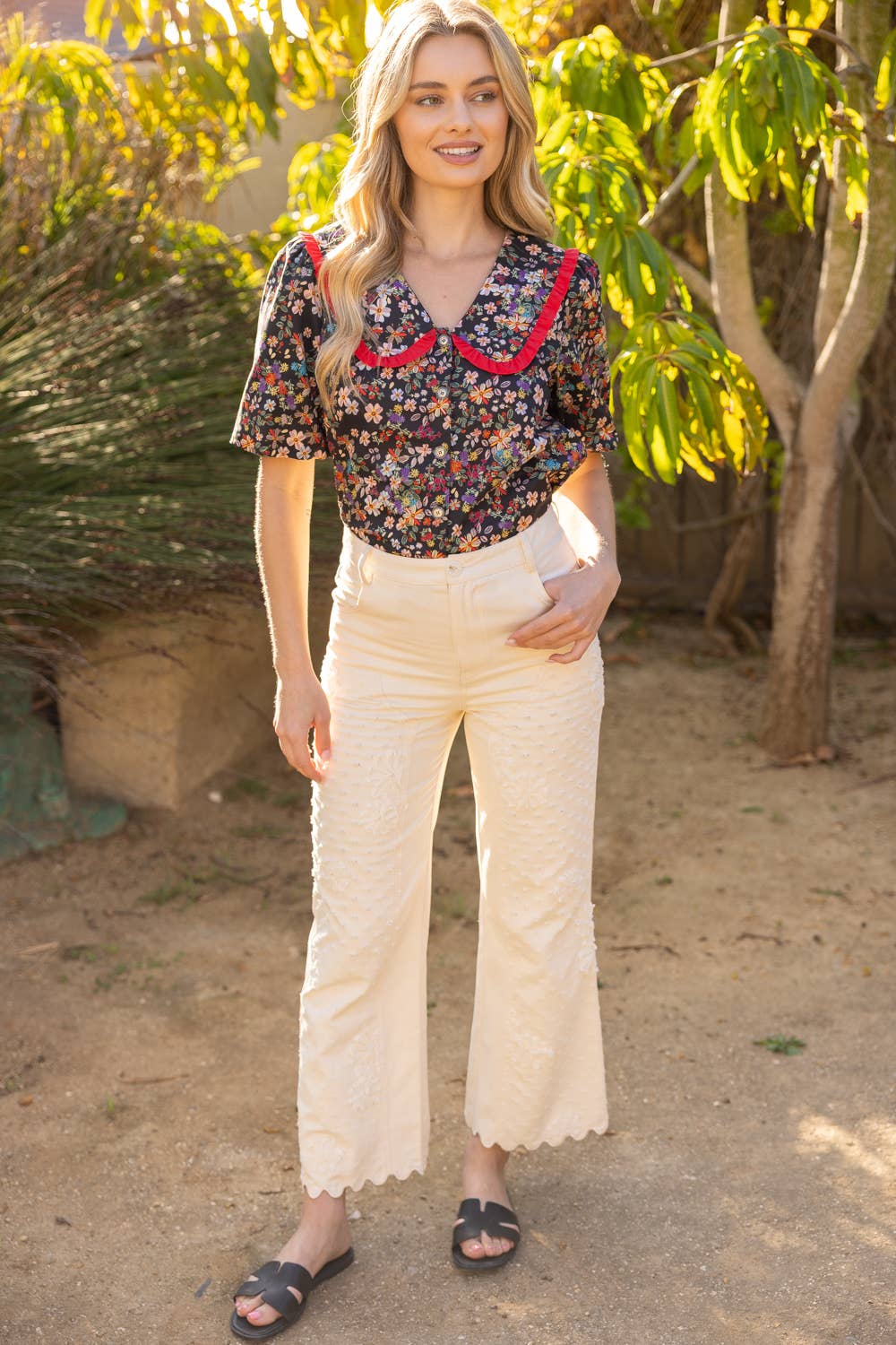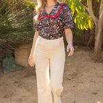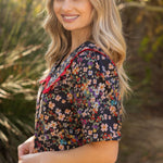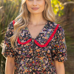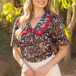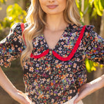 Frill Wide Collar Button Down Floral Top