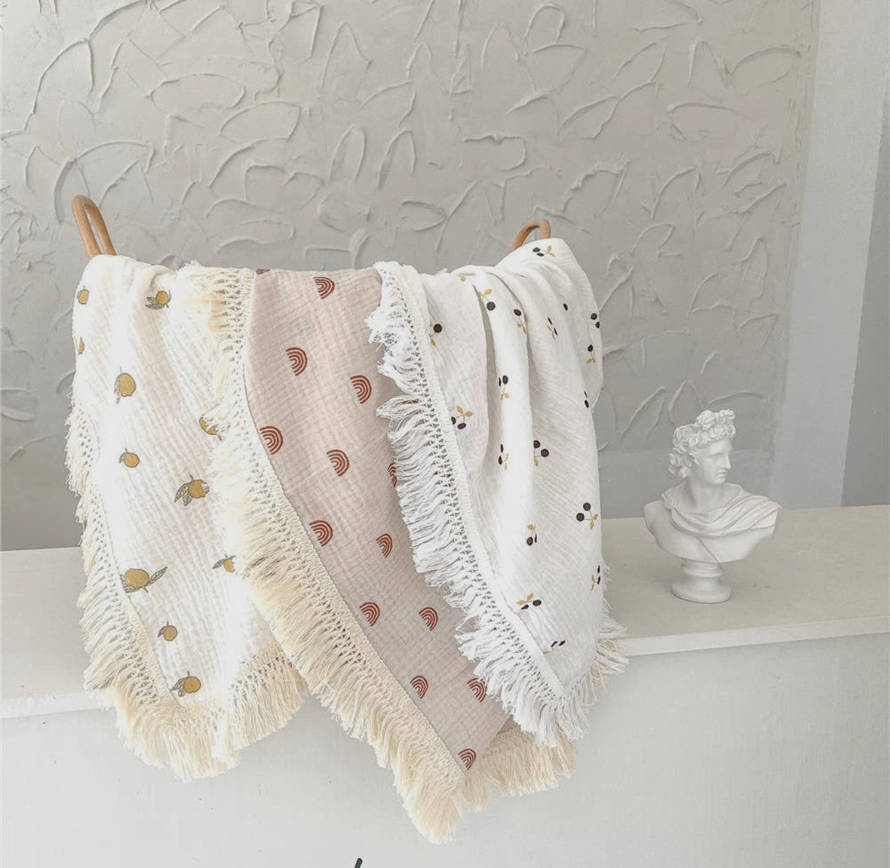 The soft and breathable baby blanket is available in a wide range of colors. The soft cotton fabric keeps you warm and has a nice texture.