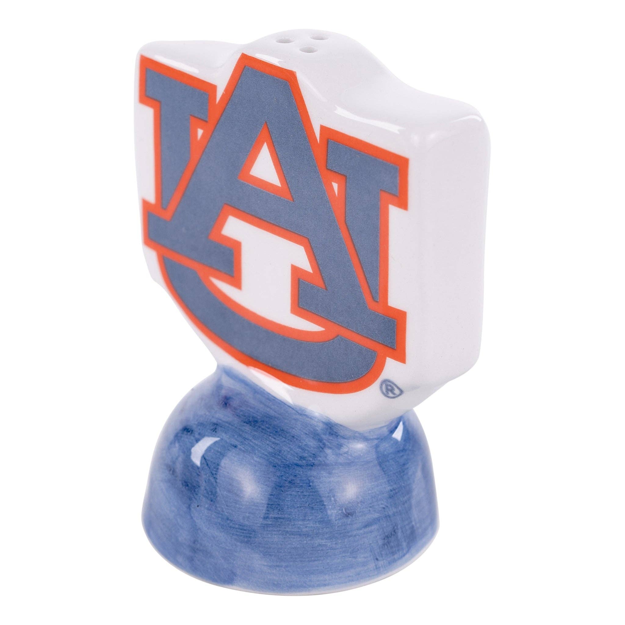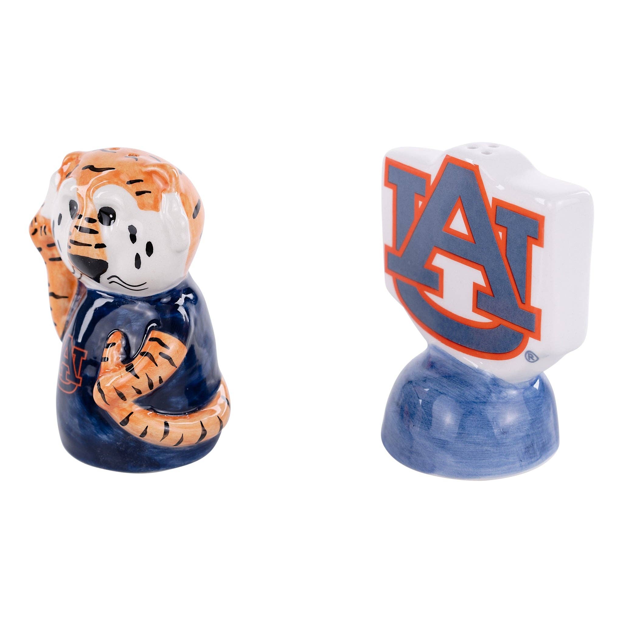 Gear up for gamedays with this adorable Auburn Salt & Pepper Set. Every table needs a splash of school spirit and what better way than to have a set of Salt & Pepper Shakers with your favorite team's mascot and logo! Featuring the Auburn AU on one and the adorable Aubie on the other, you're sure to bring team pride to every meal in and out of football season! * Original Design * Dimensions: 3" x 3.25" and 2.75" x 3.25" * This set includes one salt and one pepper shaker. * Reusable and refillable. * Hand wash only. Check out our entire Auburn University Collection!