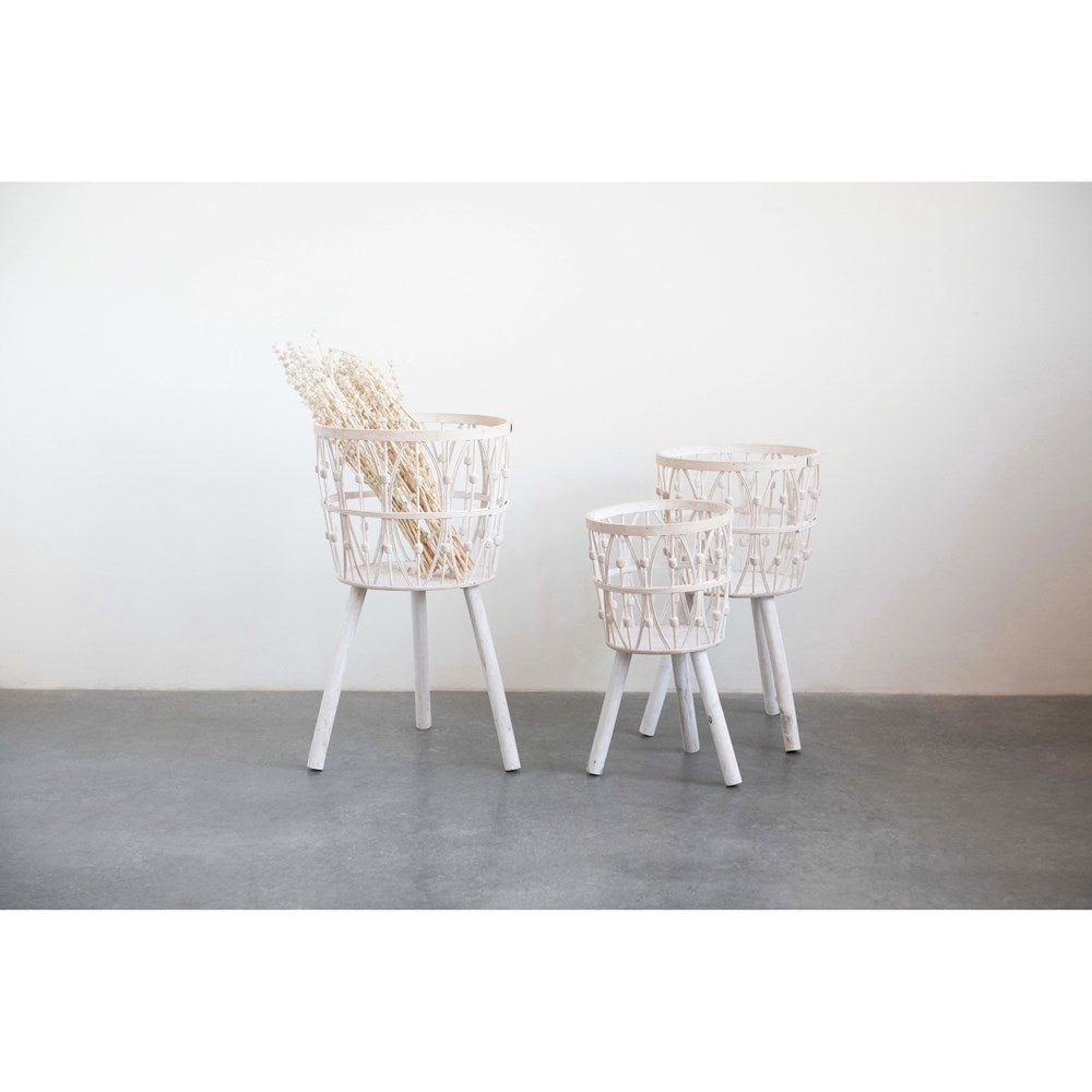 Bamboo Wood Baskets w/ Legs, Whitewash | 3 sizes