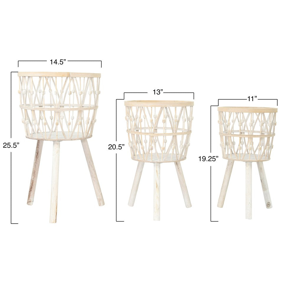 29-1/2"H, 25-1/2"H & 22"H Bamboo Wood Baskets w/ Legs, Whitewash