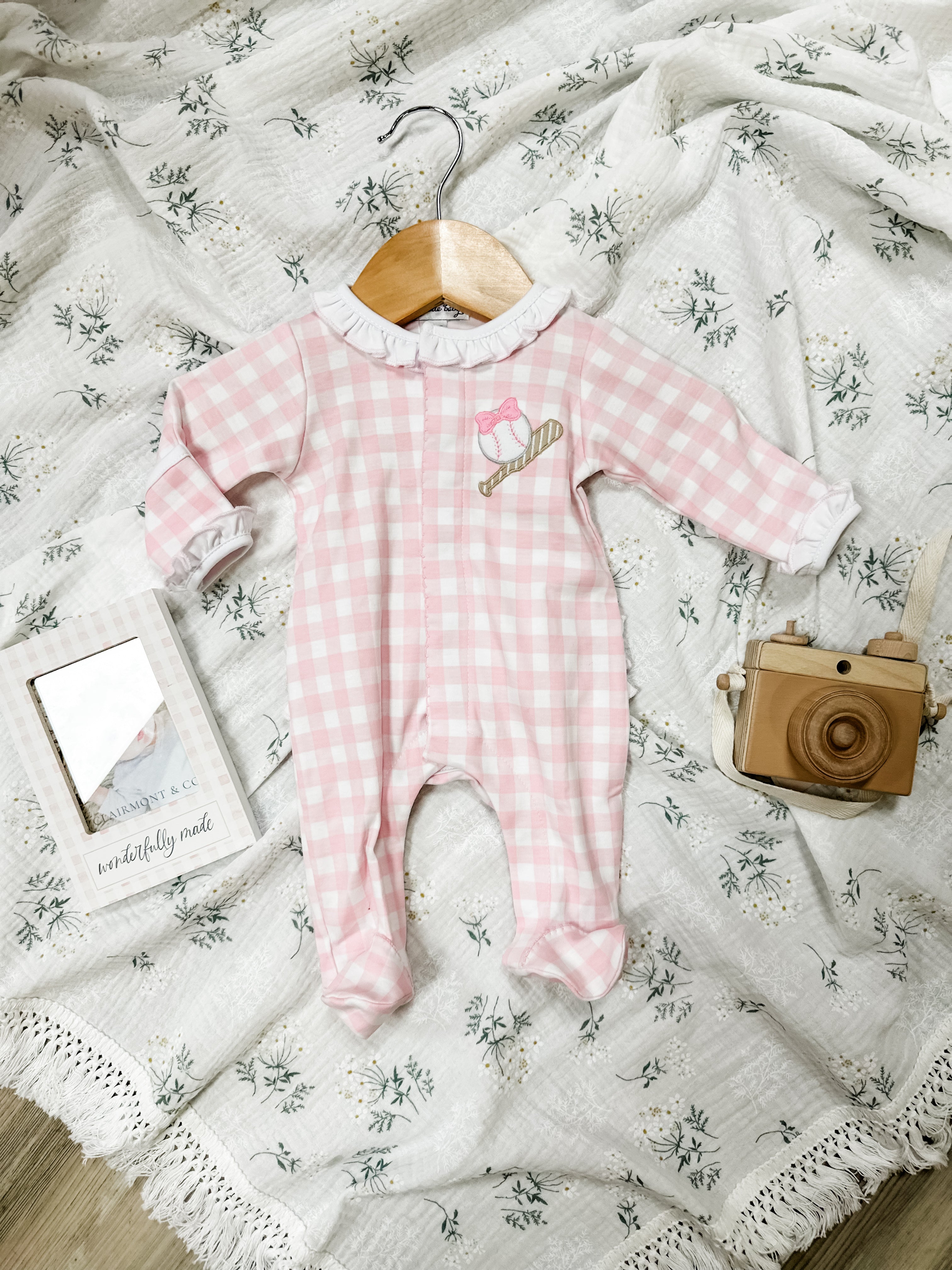 Batter Up Applique Pink Ruffle Footie