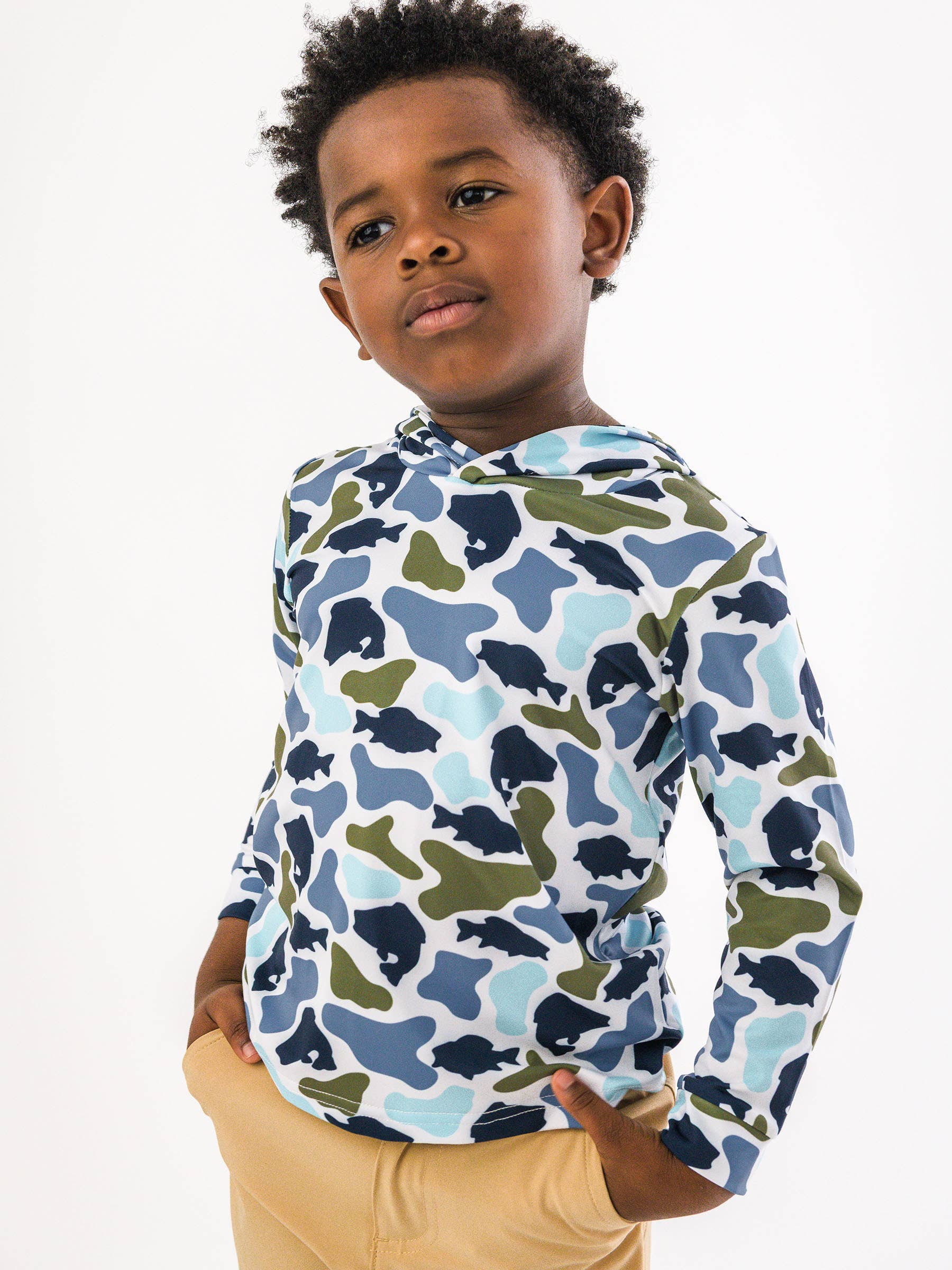 Boys Fish Camo Catch Performance Hooded Shirt: Multi-Color