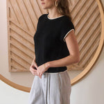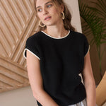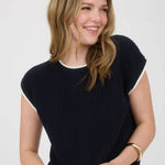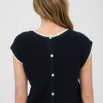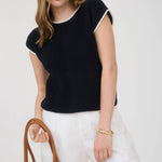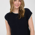 Short Sleeve Knit Navy Sweater Top with Contrast Trim