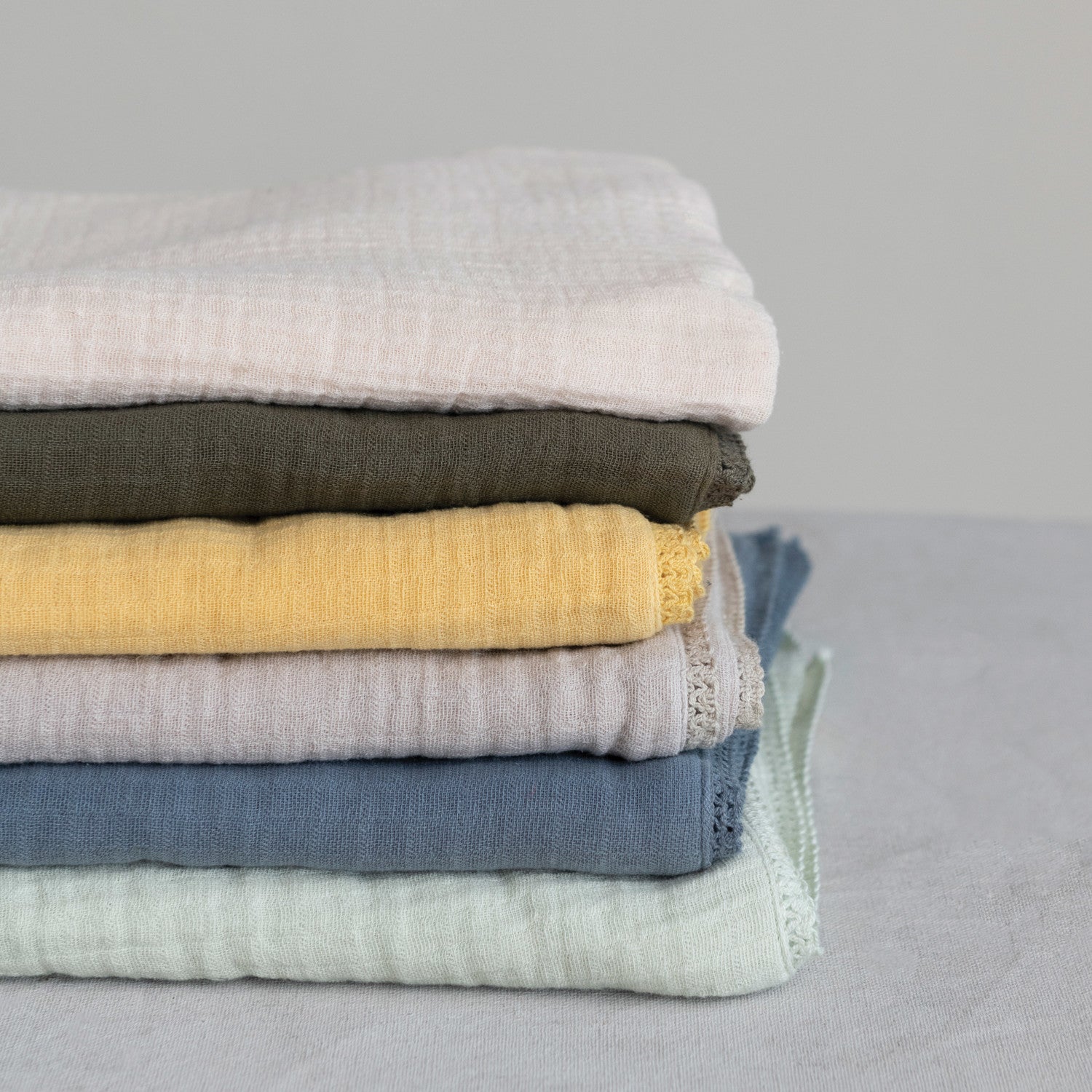 Cotton Double Cloth Baby Blanket w/ Trim in Bag