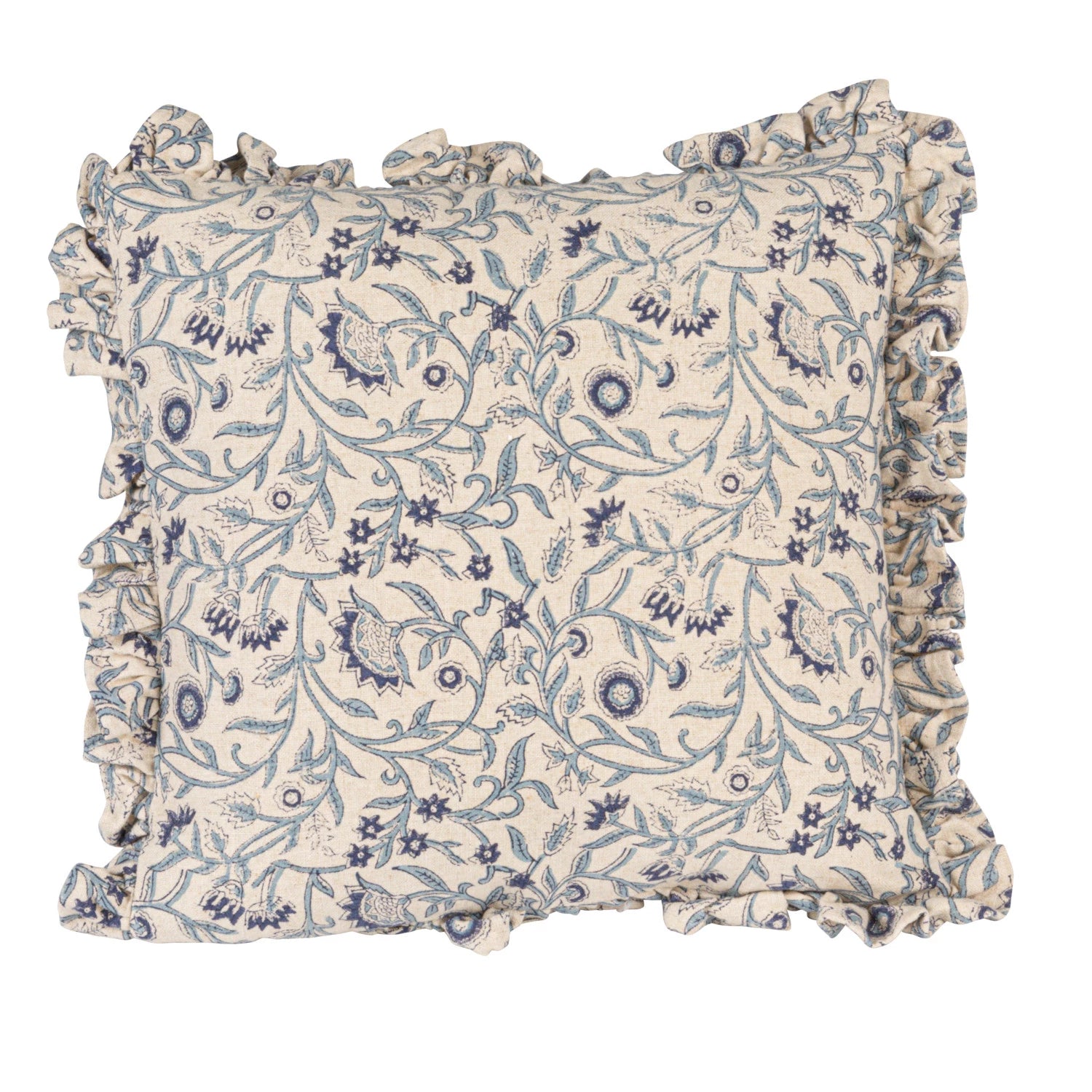 This Blue Floral Cotton Blend Pillow brings a touch of pastoral charm to any space. The intricate floral design, set against a tranquil blue background, evokes a sense of traditional elegance. Measuring 18 inches square, it's sized just right for providing support and adding a decorative touch to the home. Whether nestled on a cozy farmhouse couch or accenting a French country loveseat, this pillow is a versatile and stylish choice. Crafted from a soft cotton blend, this pillow is both comfortable and durable, making it perfect for everyday use. The subtle pop of color and classic design make it easy to mix and match with other decor pieces in the home.
