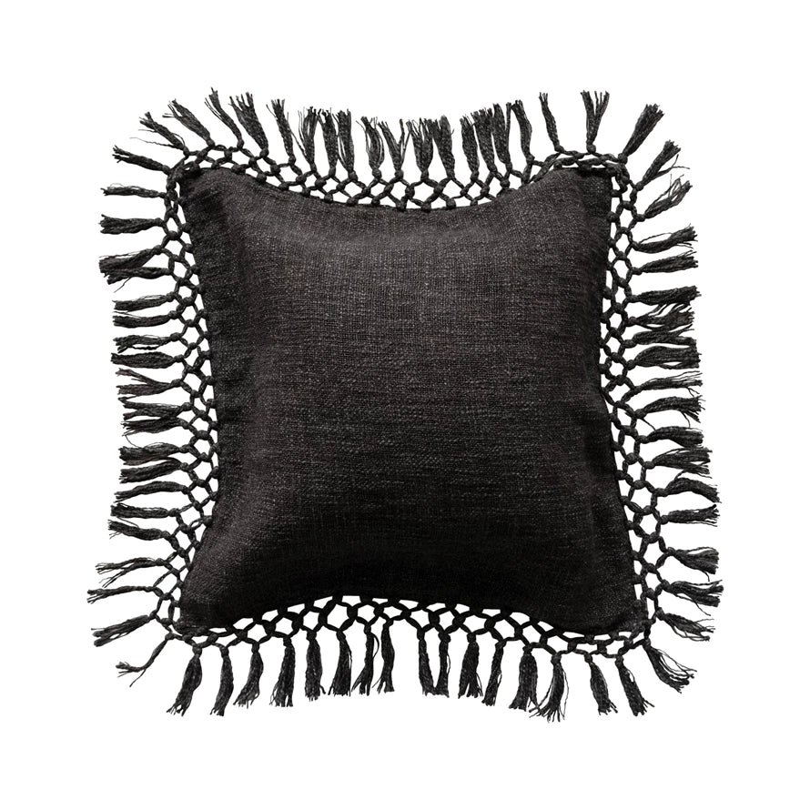 Cotton Slub Pillow with Crochet and Fringe | Charcoal