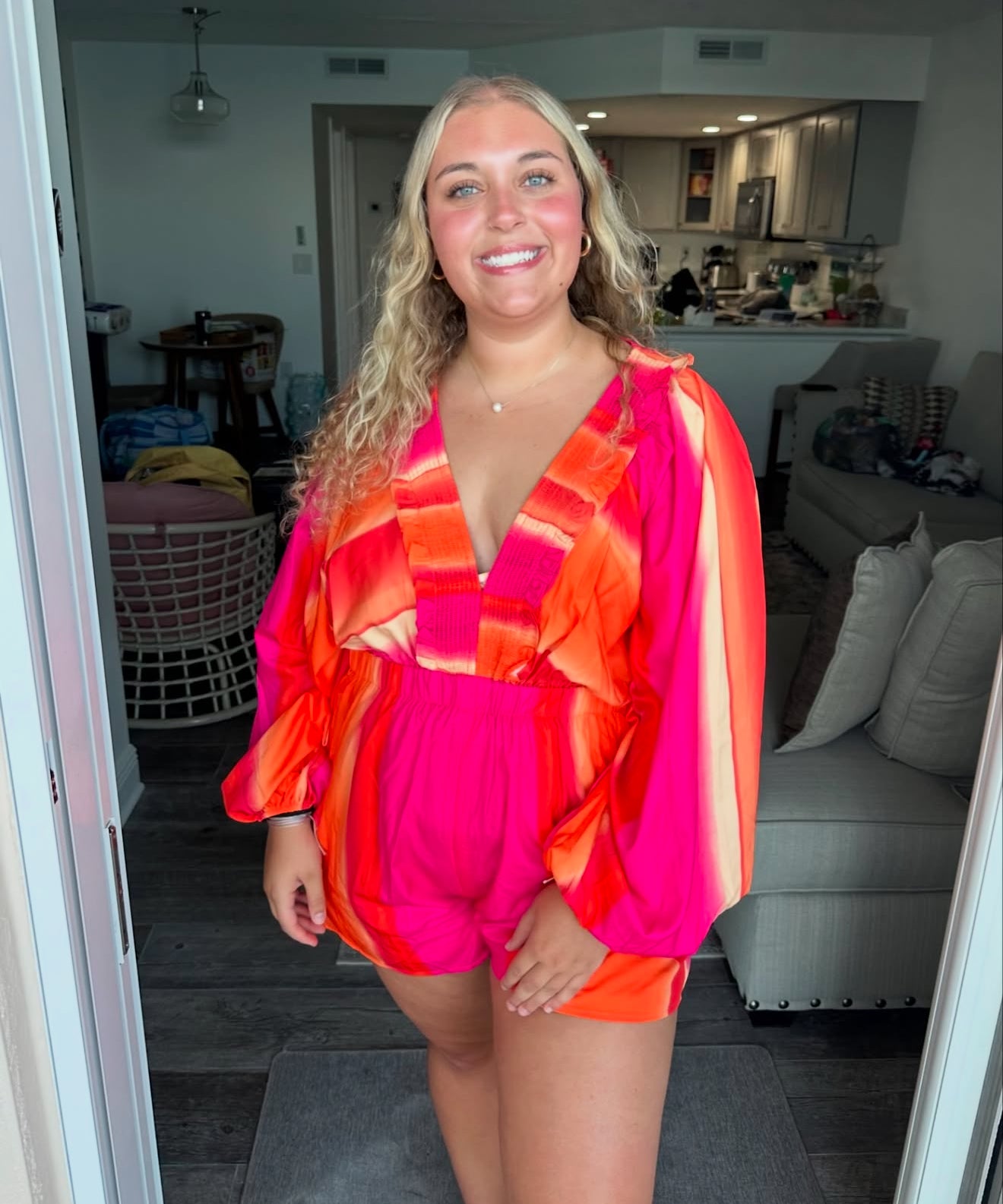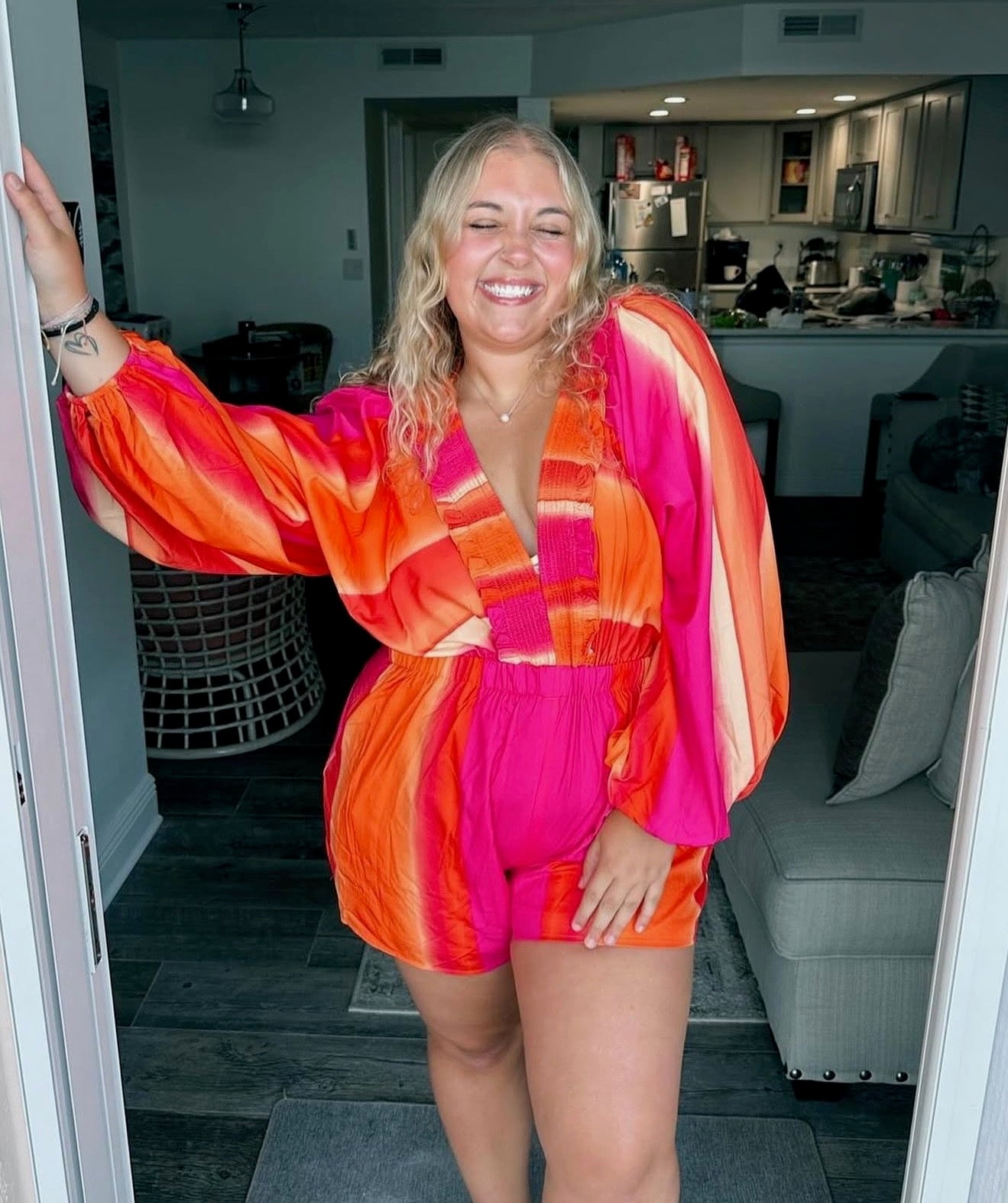 Ombre Effect Smocked Balloon Romper