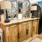 Introducing the Fiona Four Solid Door Console Credenza Server, the perfect piece for your dining room or living room. With a stunning inset top and four solid doors, this server adds both style and functionality to any space.