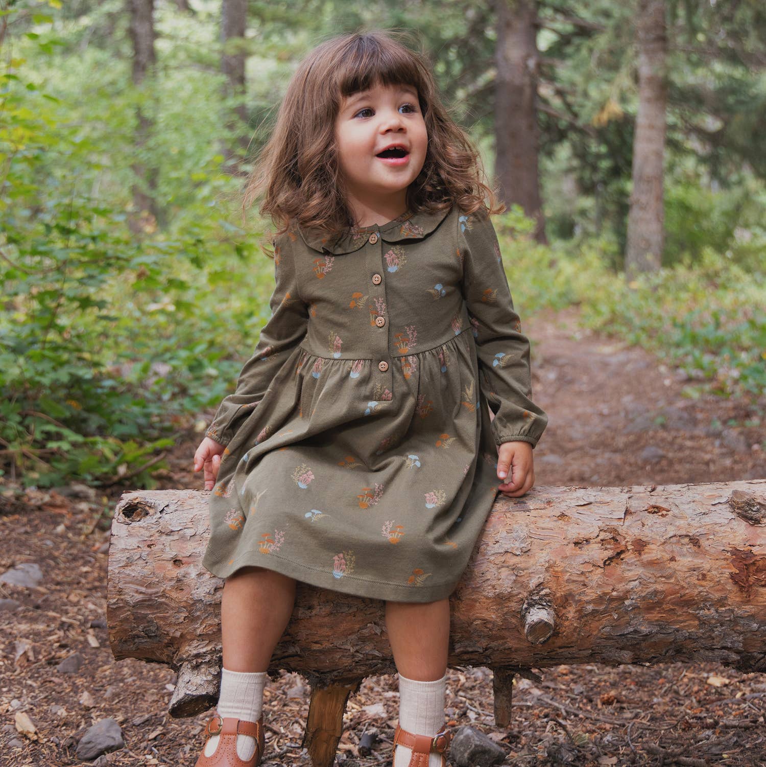 Frill Collar Dress- Lichen Mushrooms