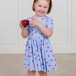 Girls Apple Orchard Gingham Short Sleeve Knit Twirl Dress
