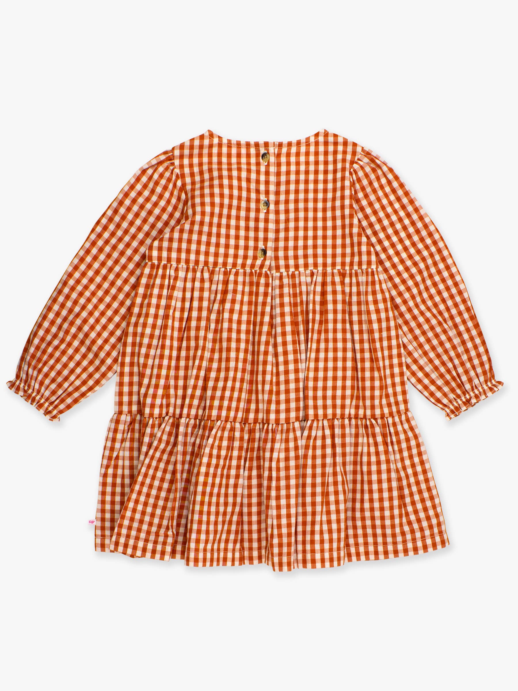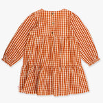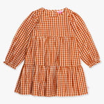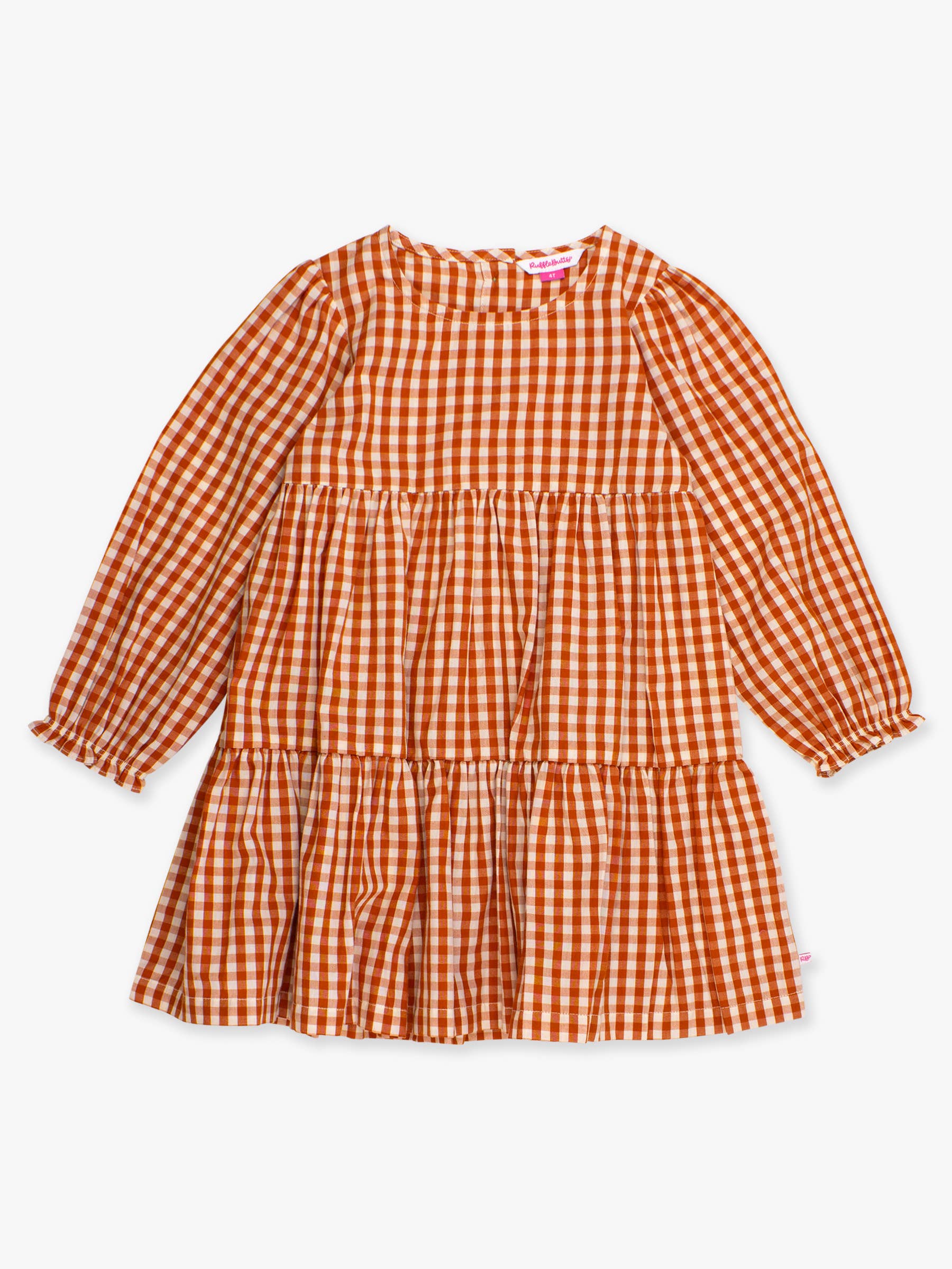Girls Classic Rust Gingham Woven Long Sleeve Tiered Twirl Dress