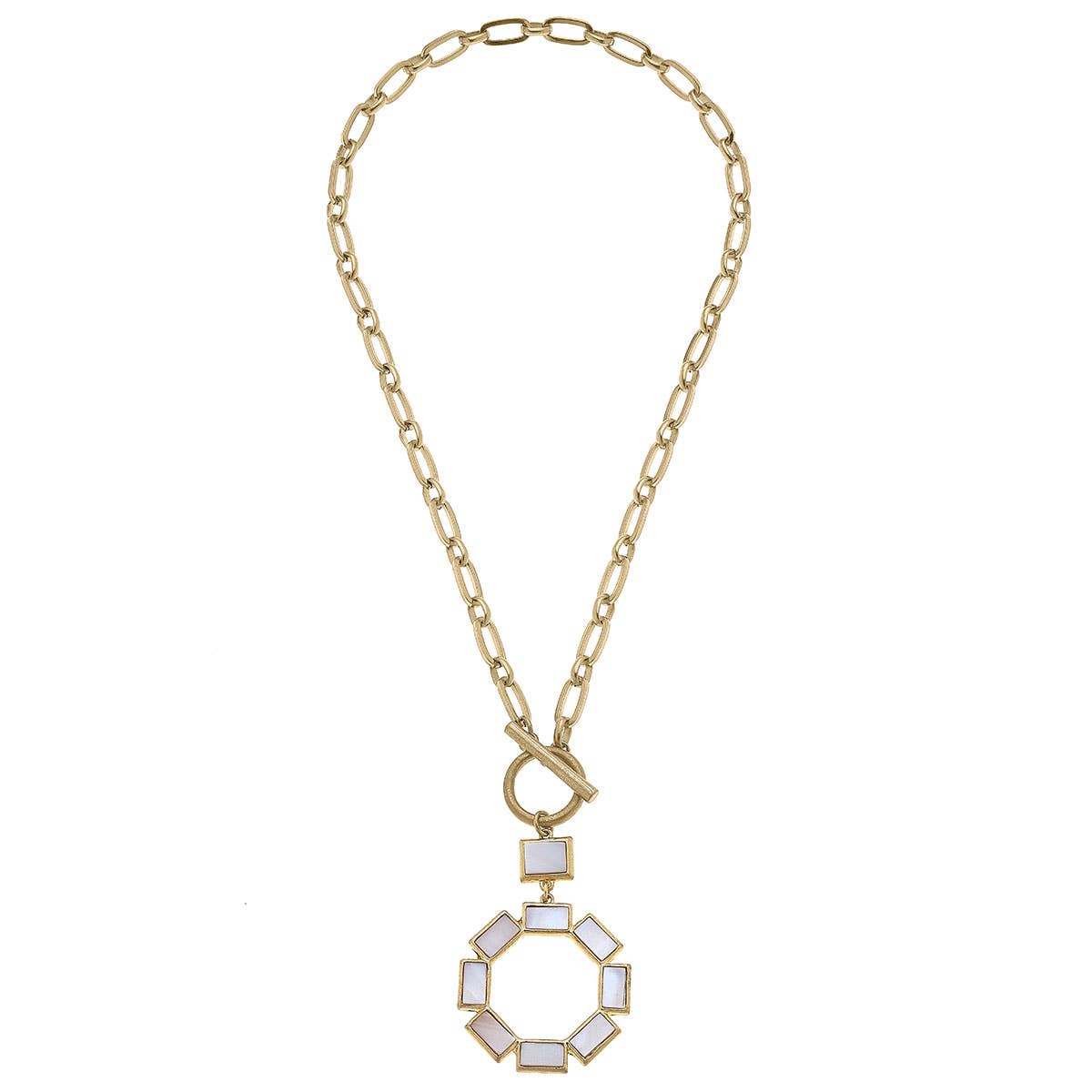 Halston Mother of Pearl Toggle Necklace in Worn Gold