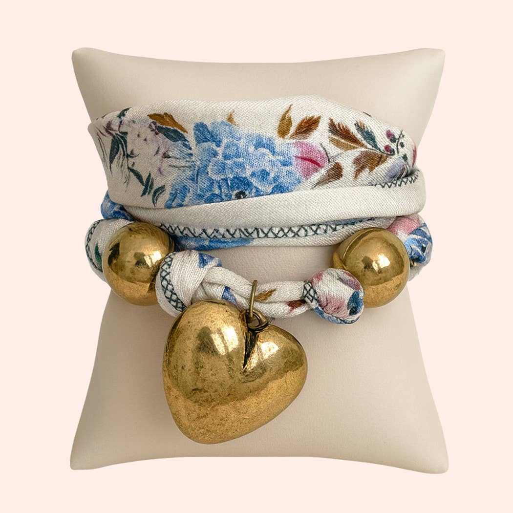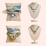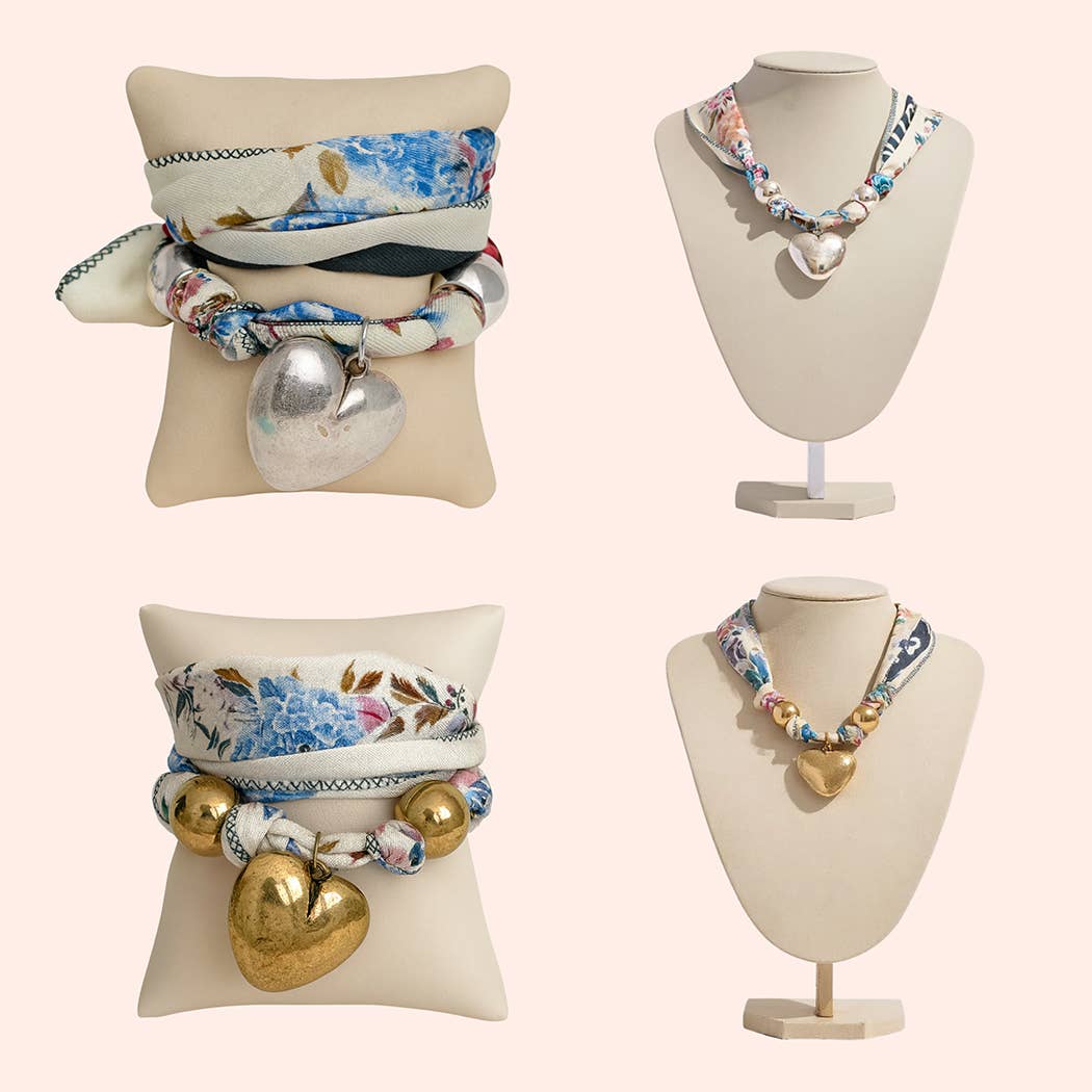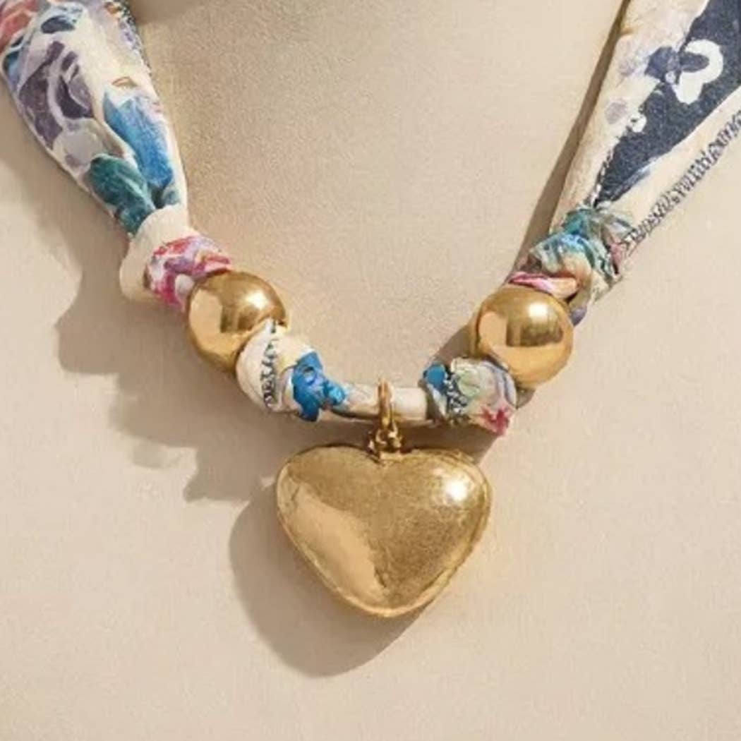 Heart and Dual Beads Pendant Scarf Gold Necklace