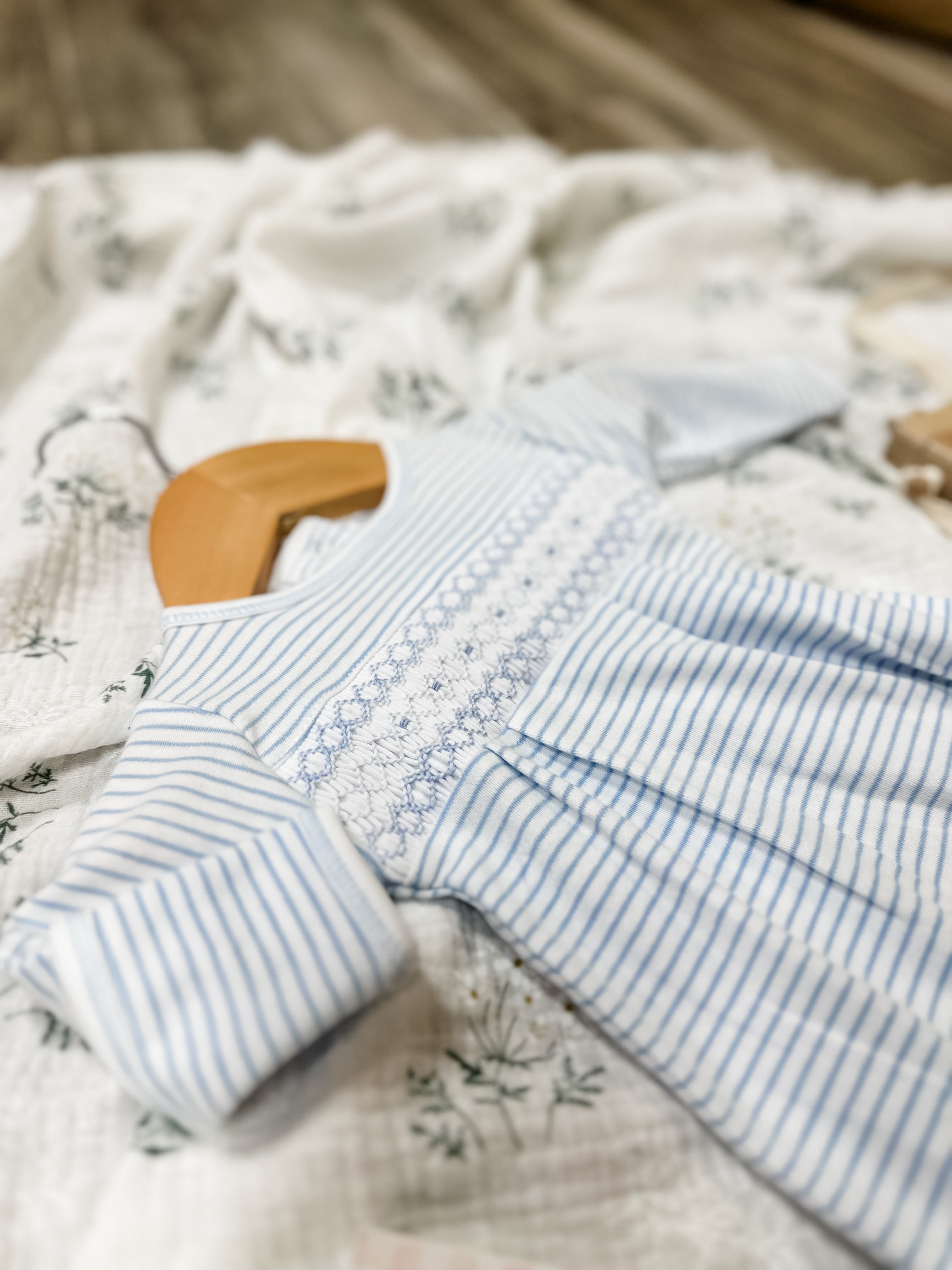 Expertly designed for your little one, the Katie and Kyle Smocked Footie offers both comfort and style. The intricate smocking adds a touch of elegance while the footie design keeps your baby warm and cozy. Made with high-quality materials, this footie is perfect for everyday wear.