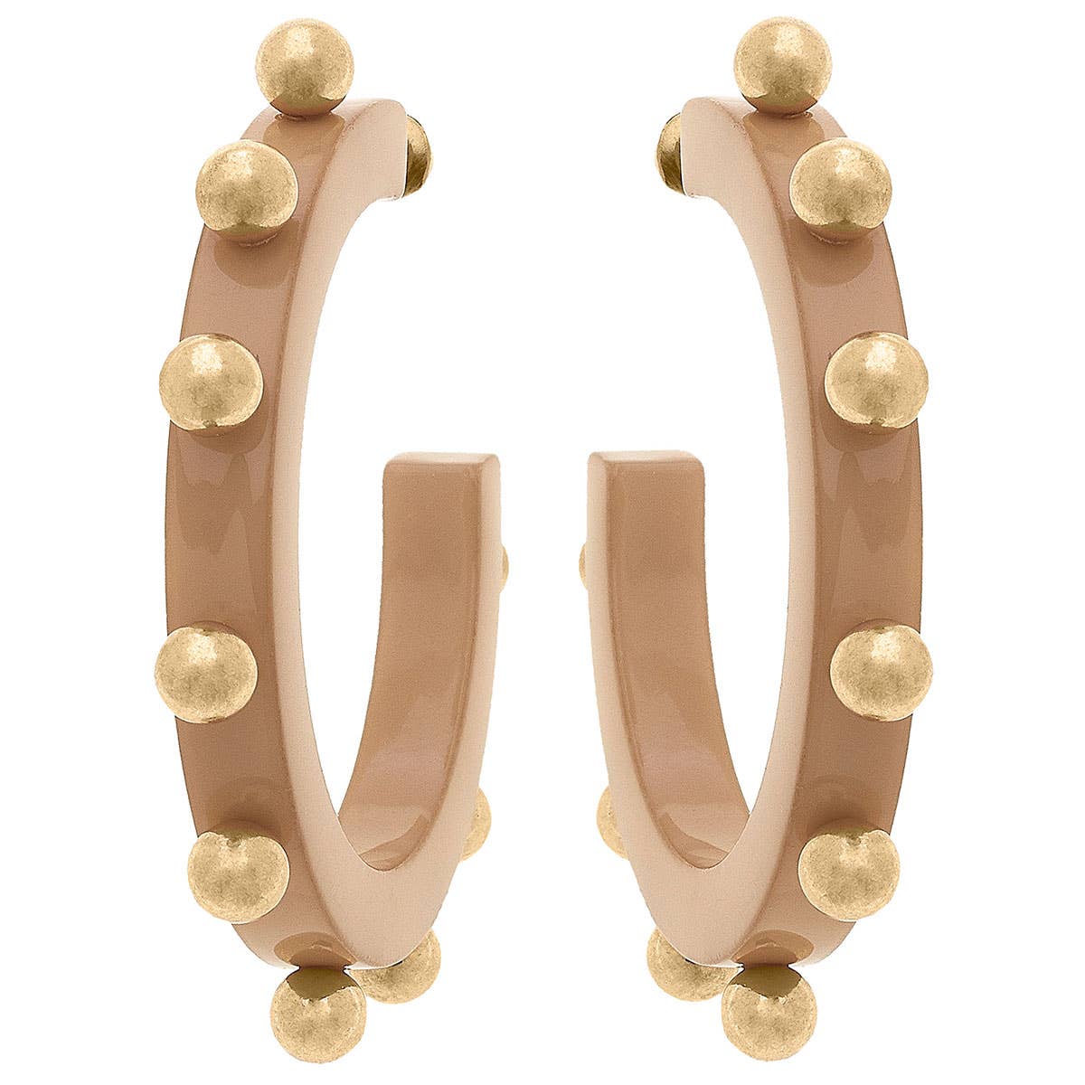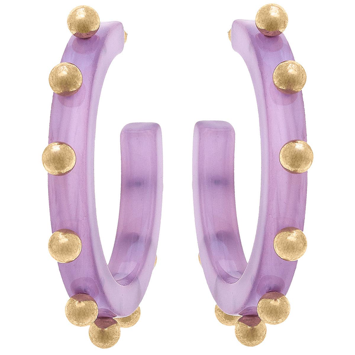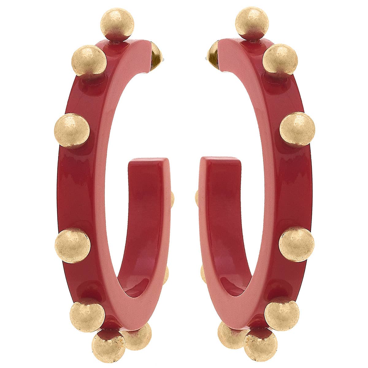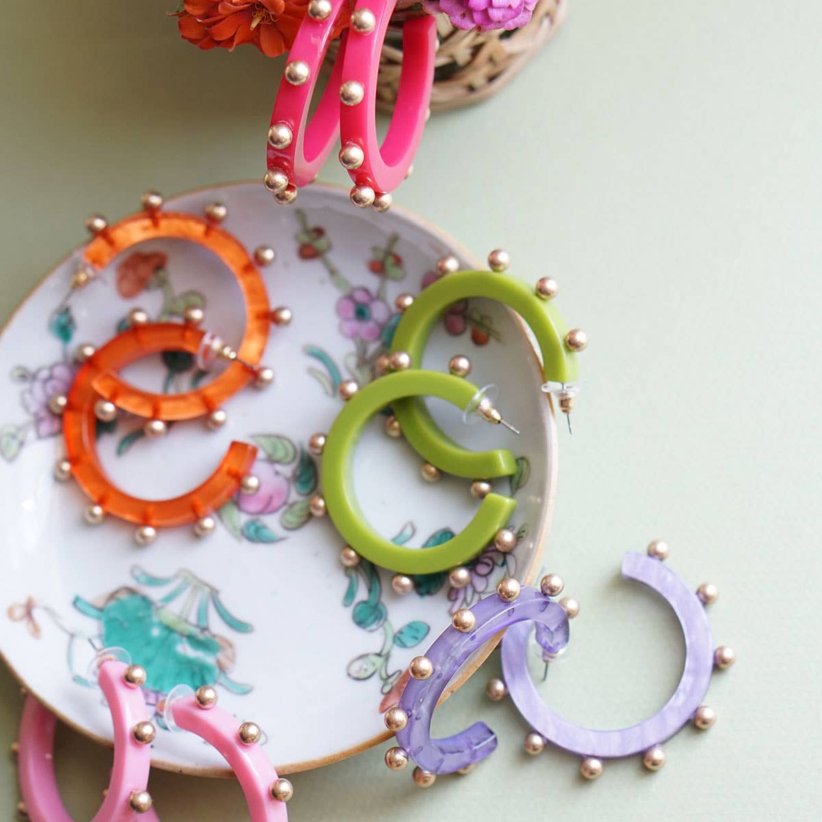 Kelley Studded Metal and Resin Hoop Earrings: Fuchsia