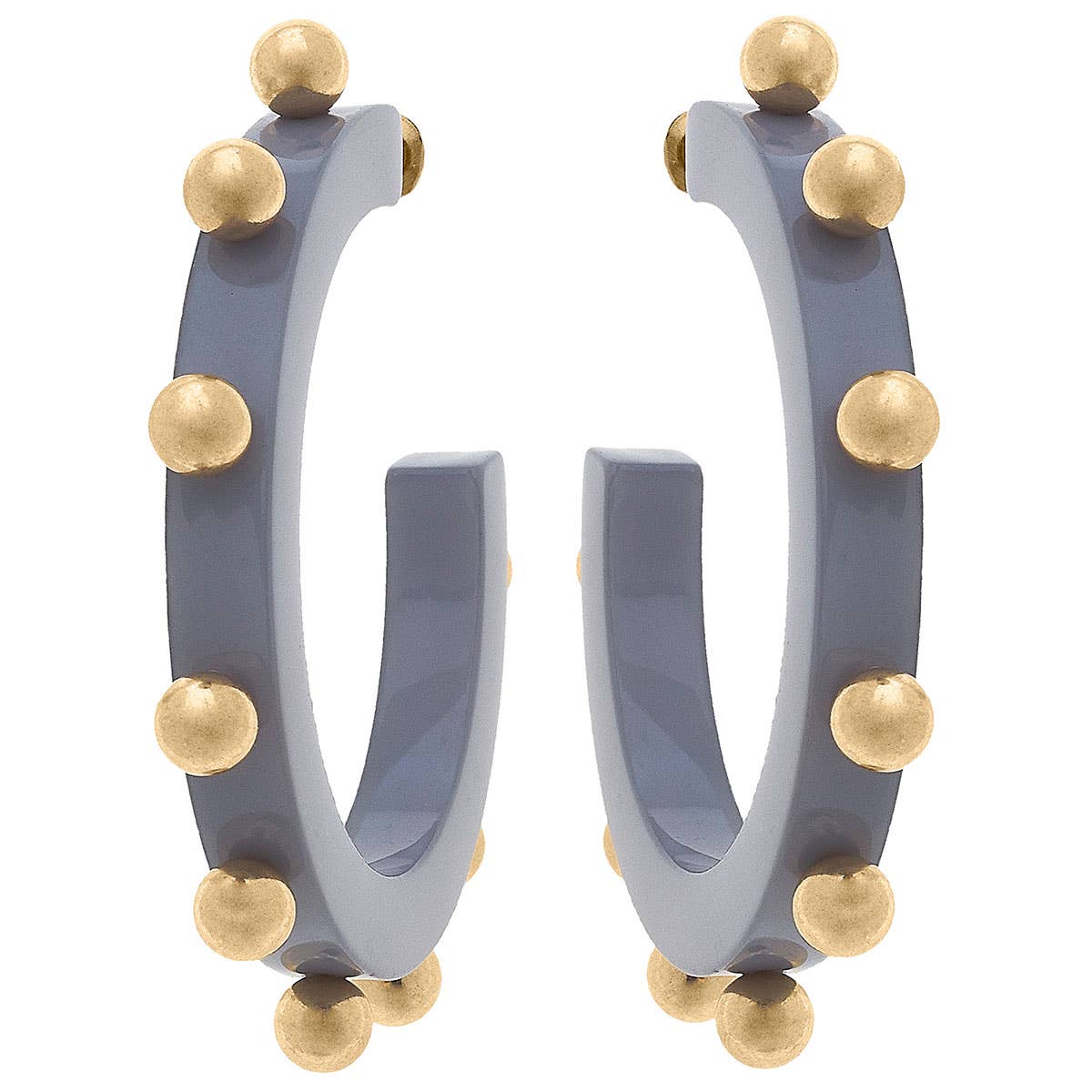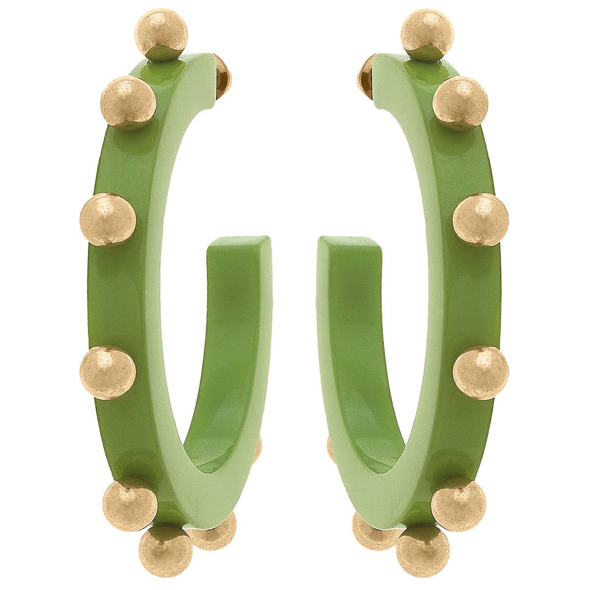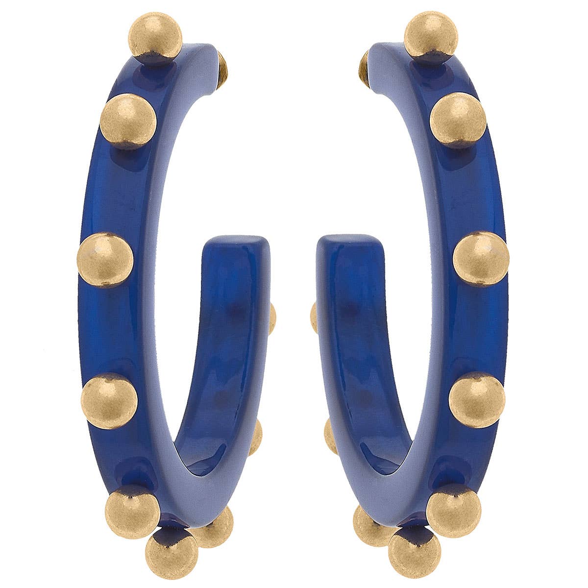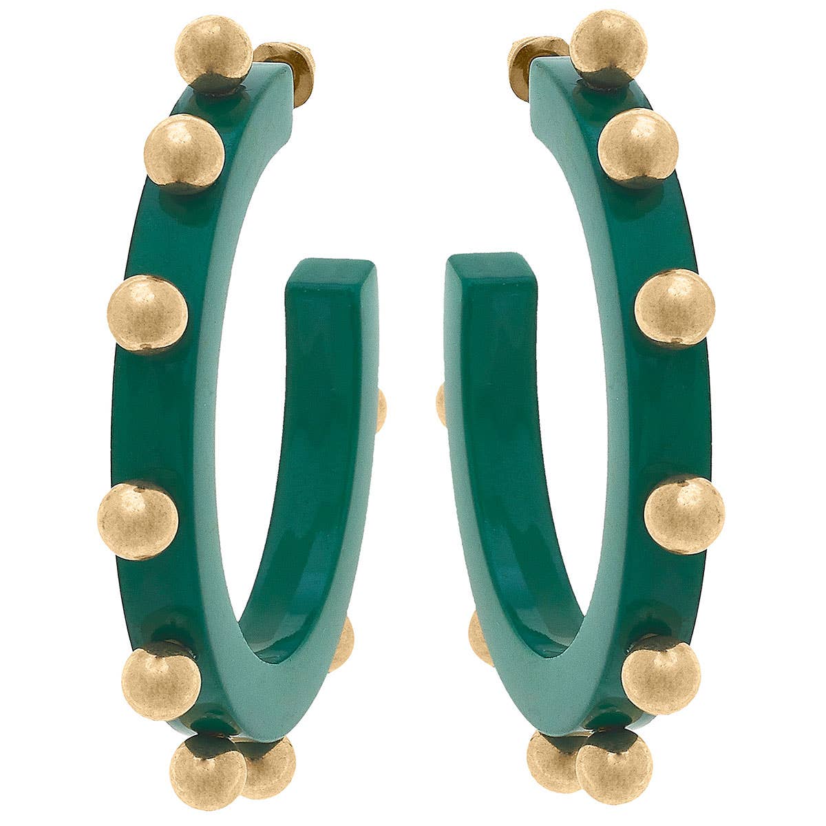Kelley Studded Metal and Resin Hoop Earrings: Fuchsia