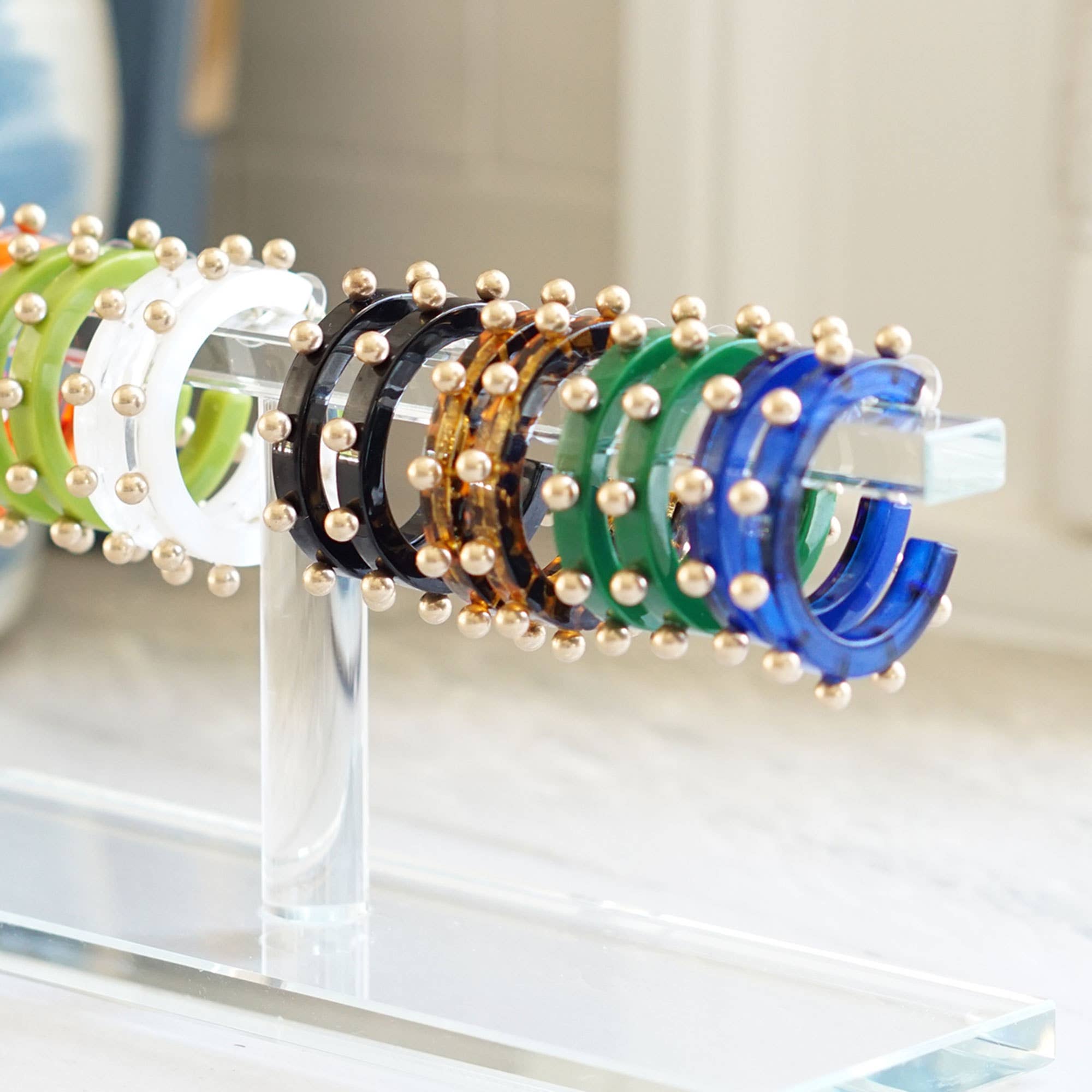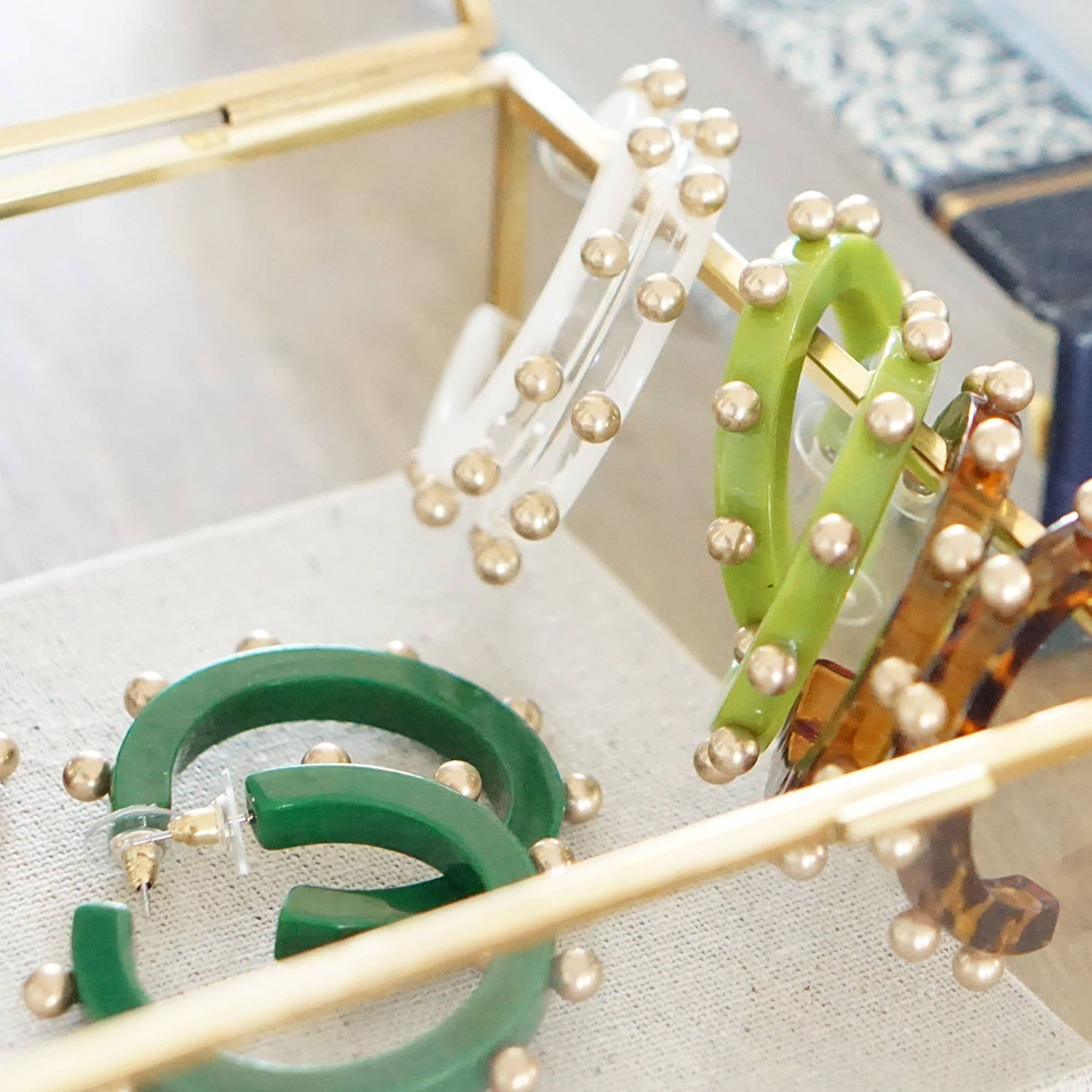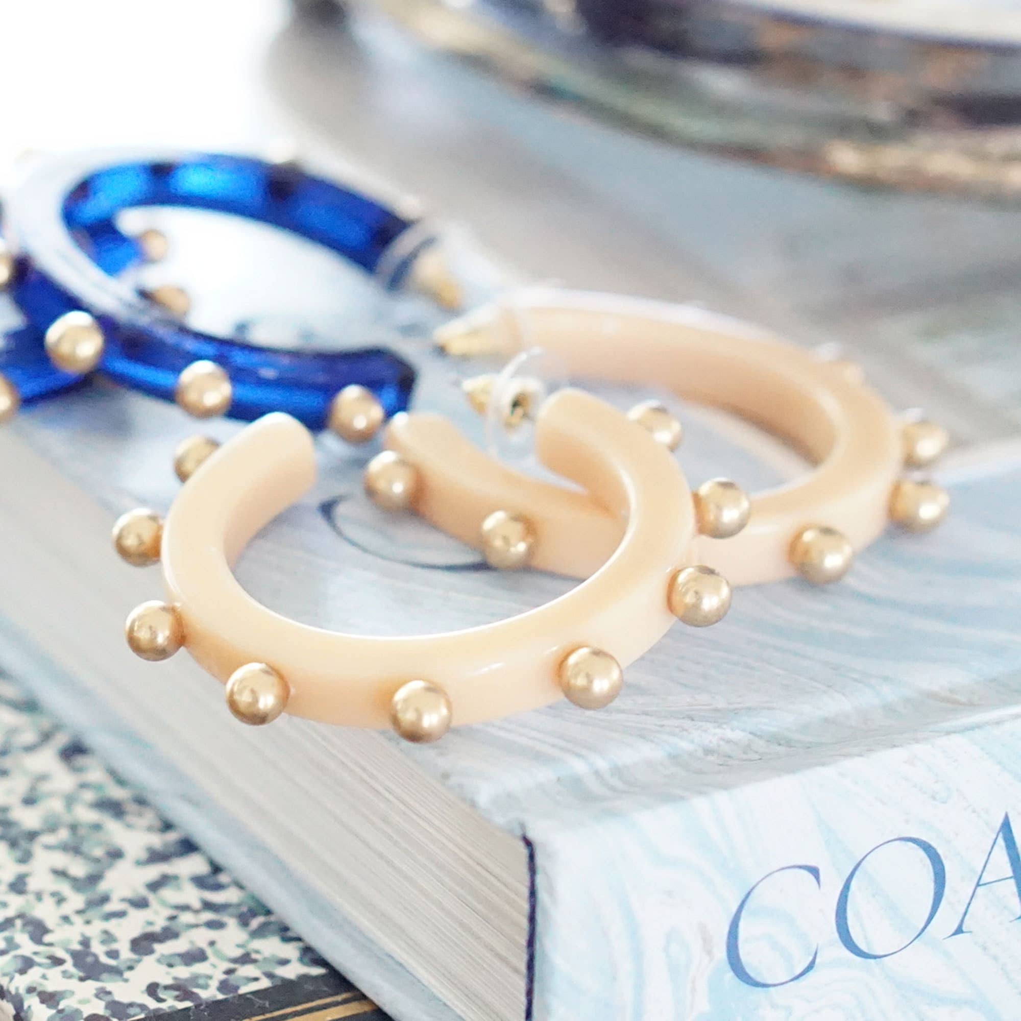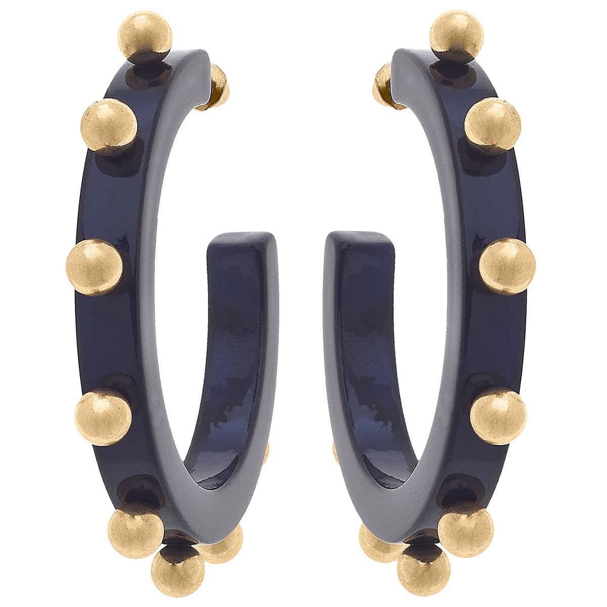 Kelley Studded Metal and Resin Hoop Earrings: Fuchsia