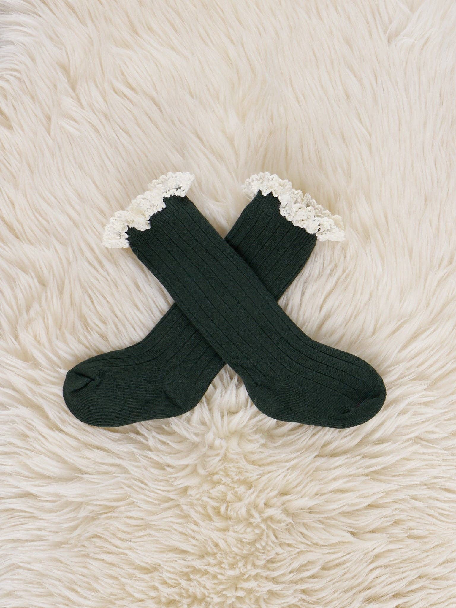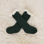 Lace Trim Knee Socks - Green