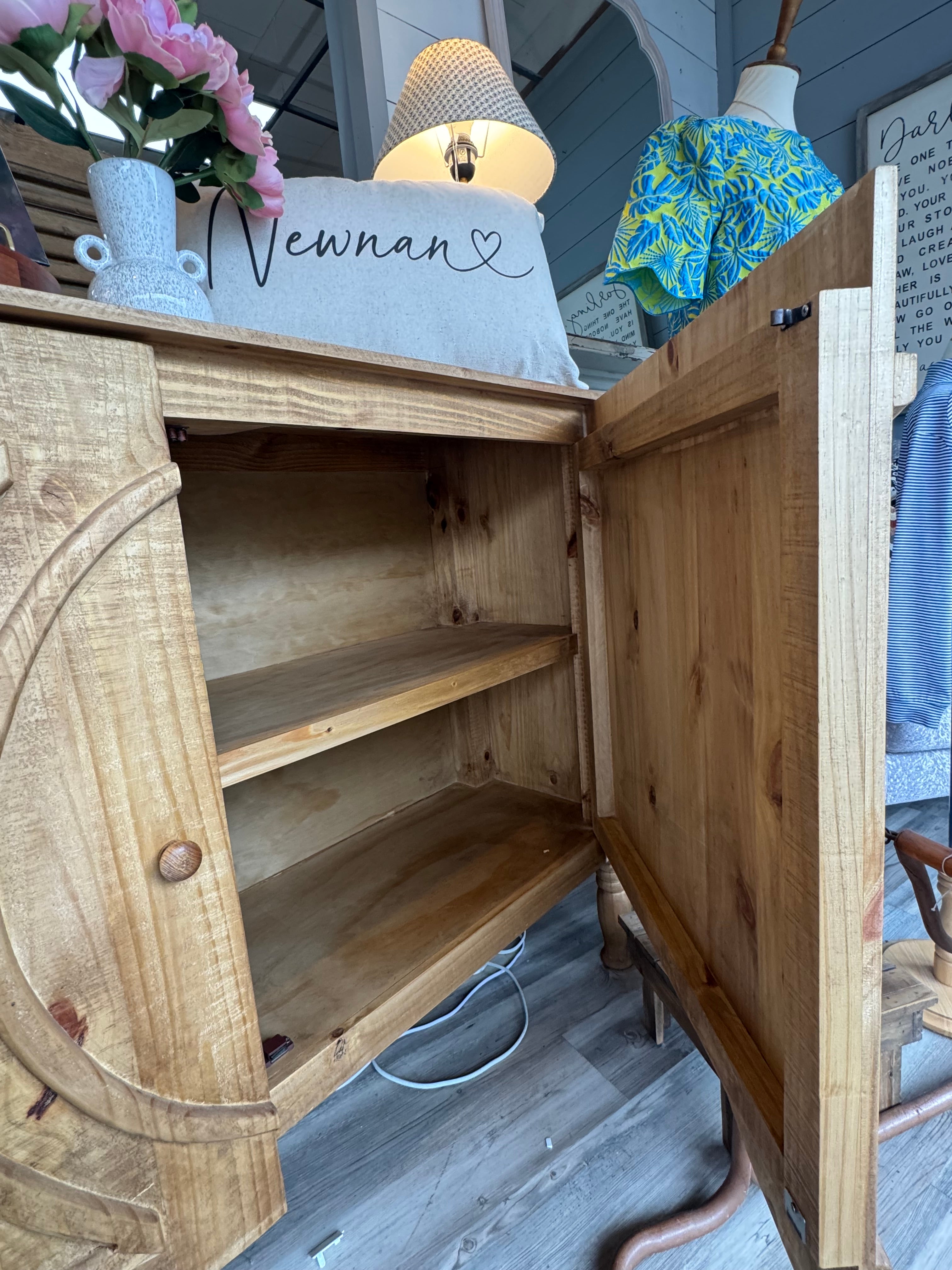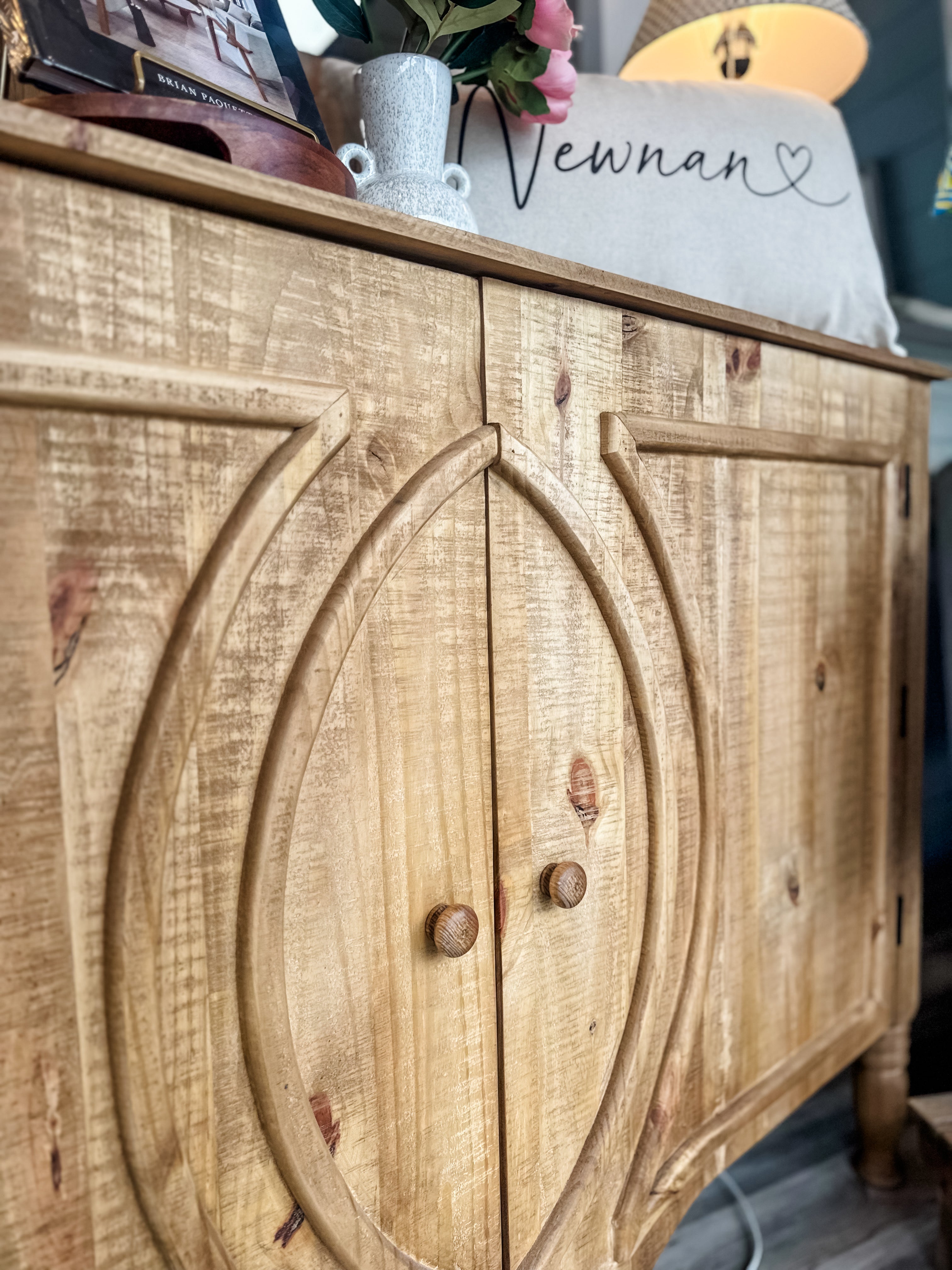 Lila Console Solid Doors Stash your stuff in style with the Lila Console! This charming piece features solid doors that keep clutter out of sight while adding a touch of character to your entryway, living room, or hallway. Perfect for storing everything from shoes and bags to board games and seasonal décor, the Lila keeps your space looking neat without sacrificing personality. With its clean lines and practical design, it's the sneaky storage solution that actually looks good doing it.