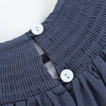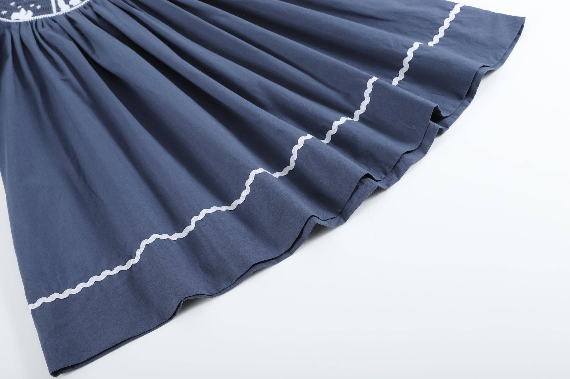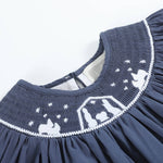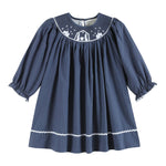 Navy Blue Nativity Long Sleeve Smocked Bishop Dress