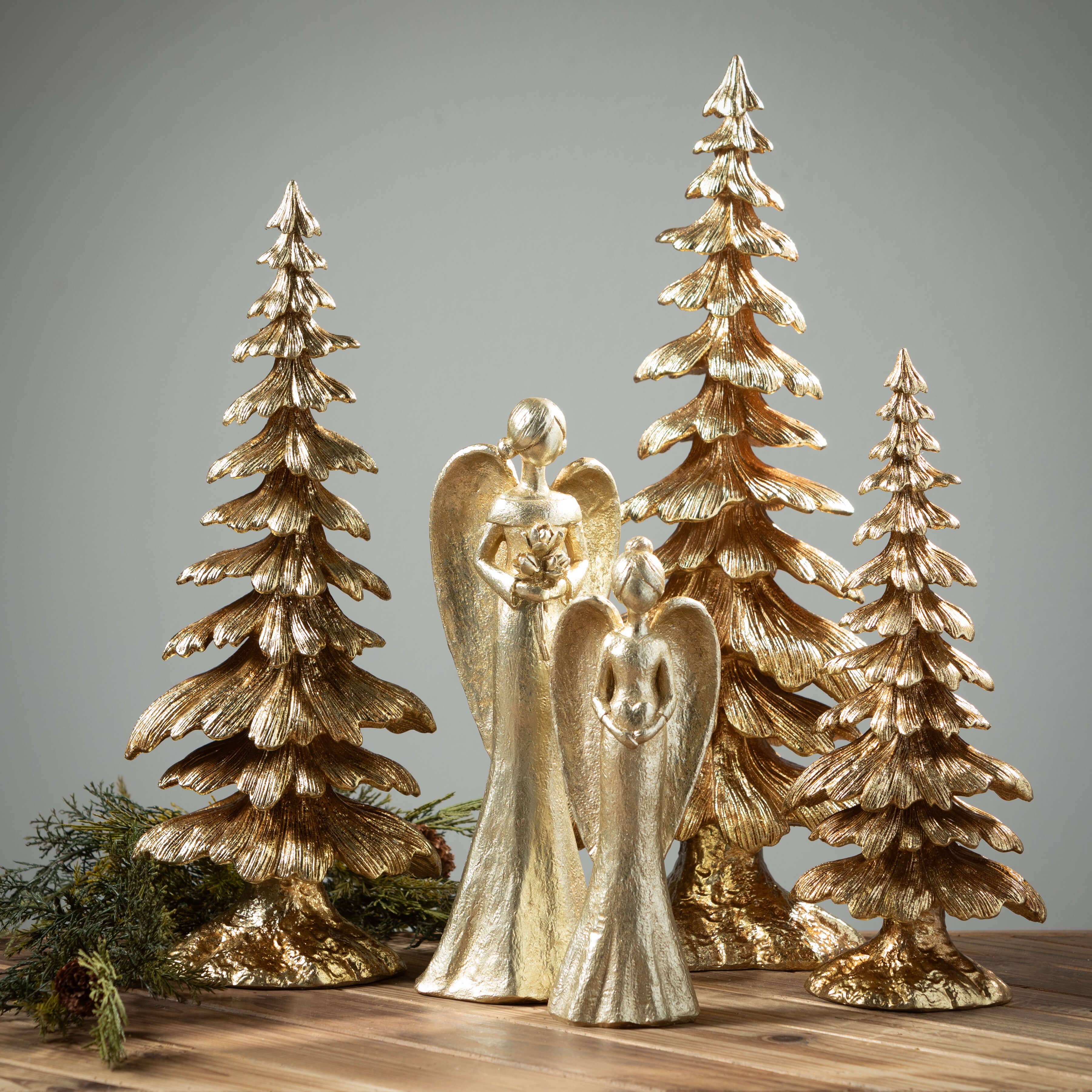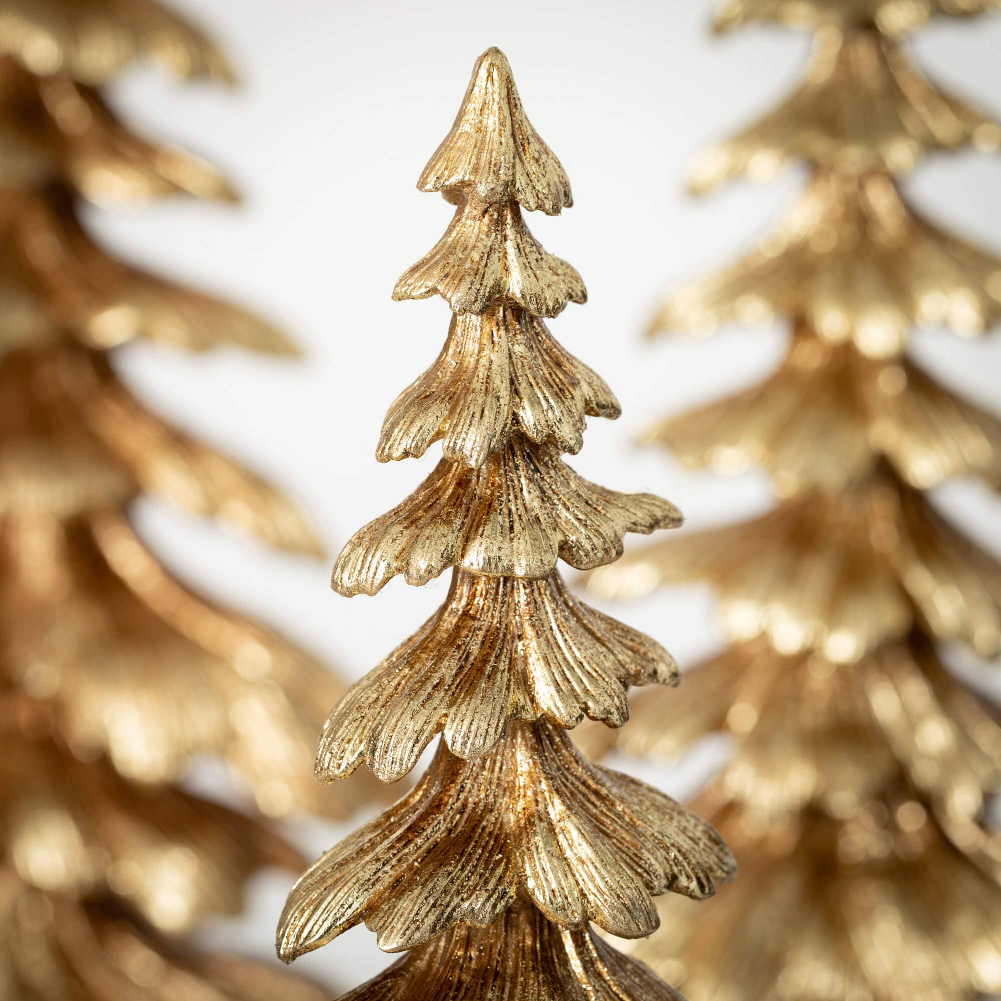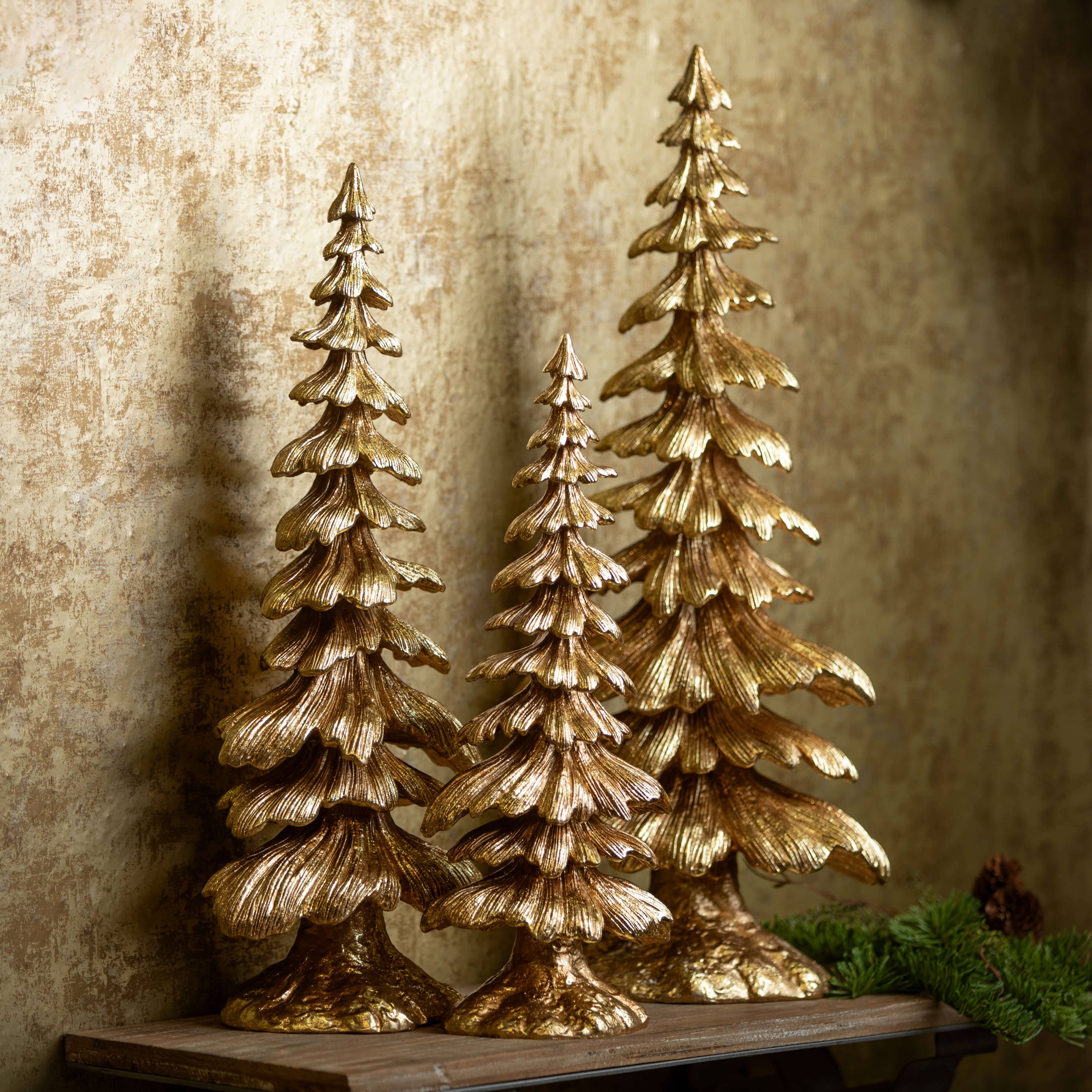 An instant lift for your holiday decor, ornate gold tabletop trees will add glam to your season. The graduated sizesmake a stunning display on their own or paired with other metallic accents. The gold finish is a true showstopper that will make friends envy your festive flair, without being over the top. Simply place them on your mantle, coffee table or entryway console for an instant shimmer that says the holidays have arrived in style. -