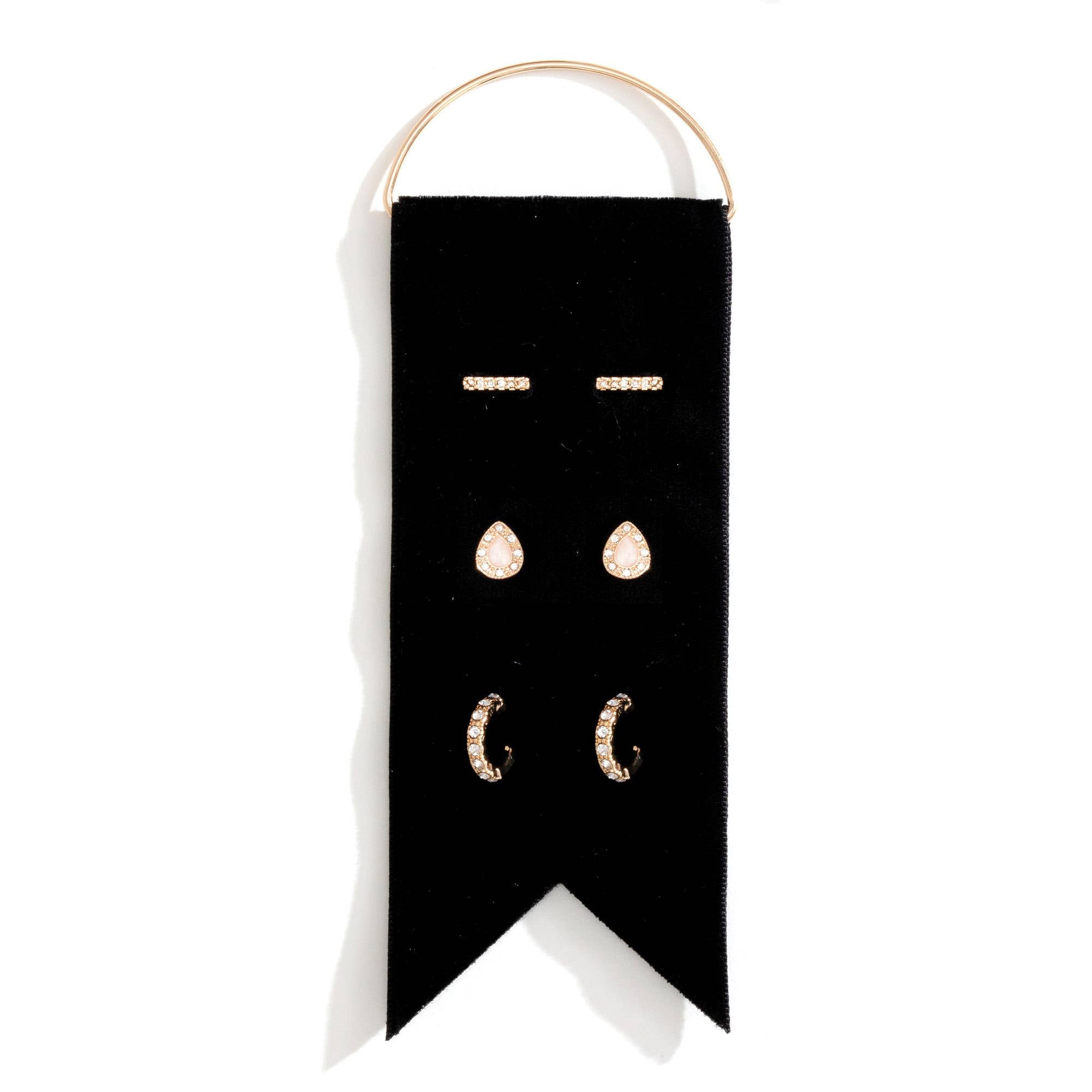Gift Set - Velvet with 3 sets of earrings - basic pave studs and small hoop Velvet Base Metal