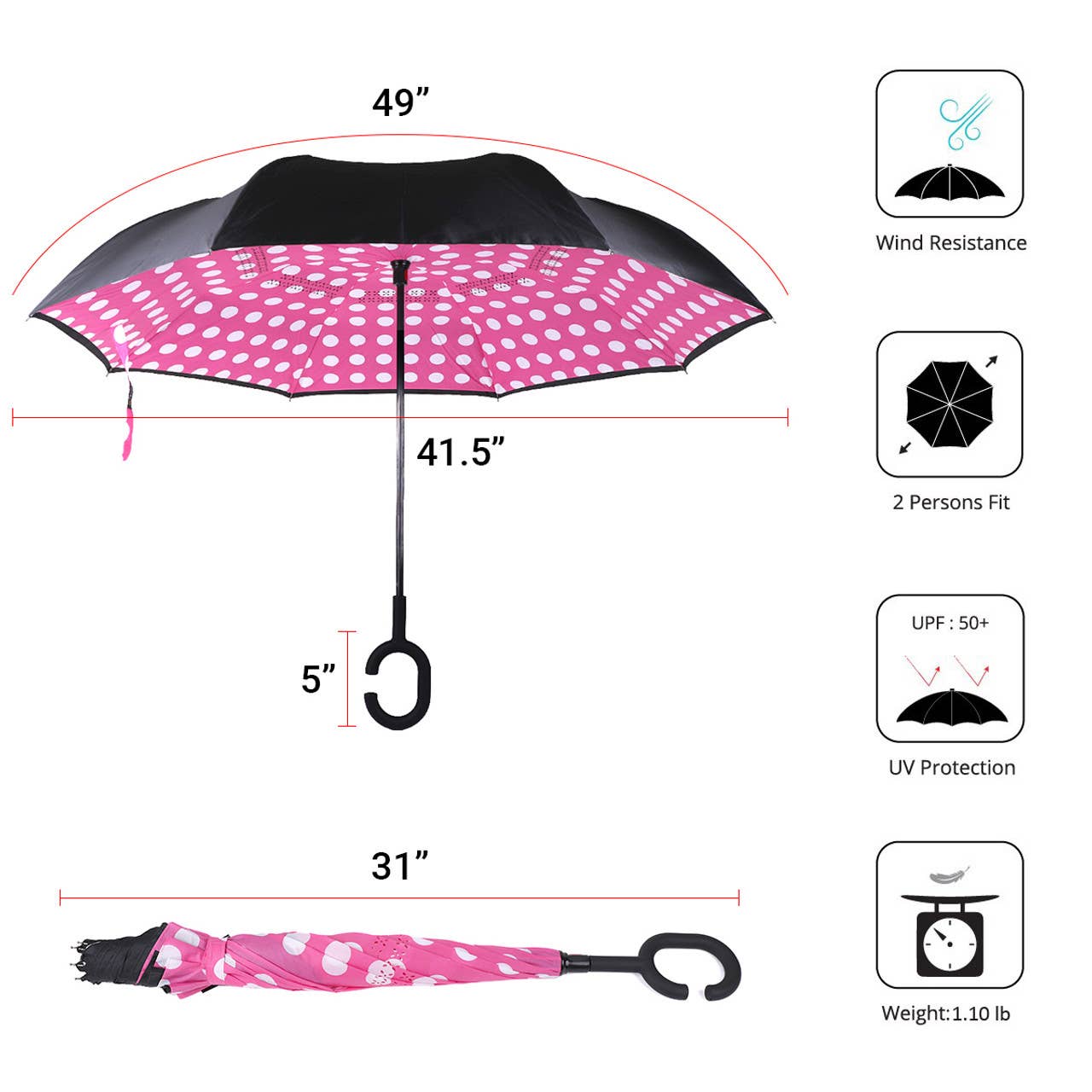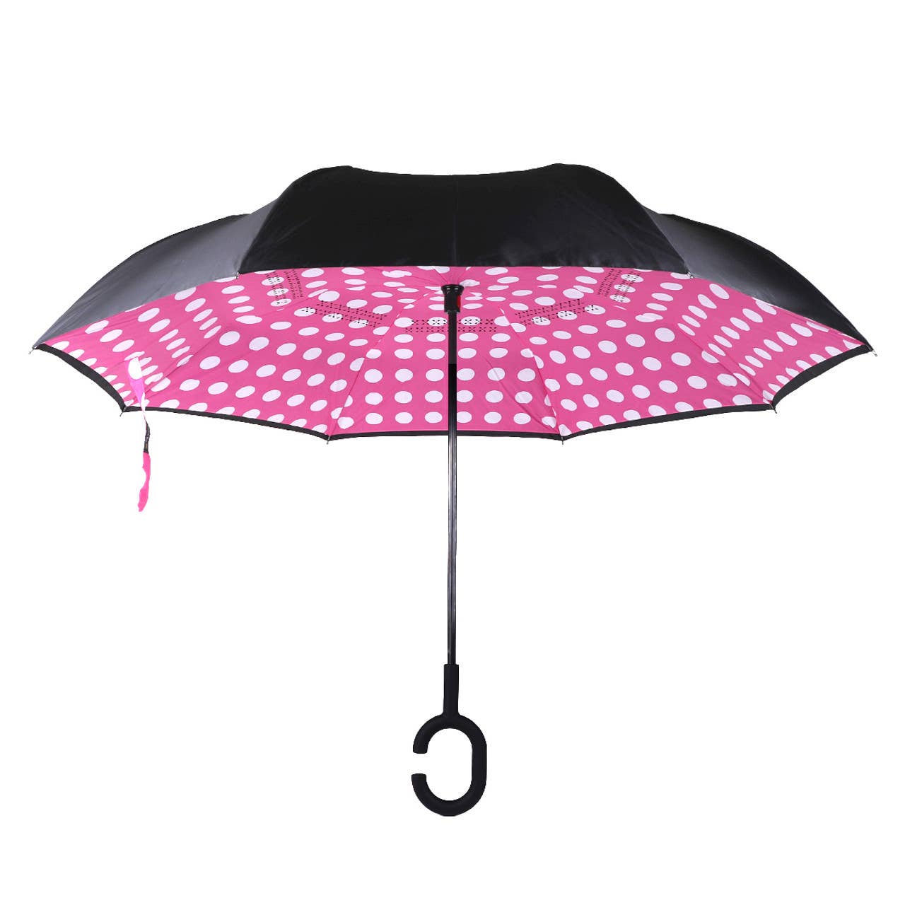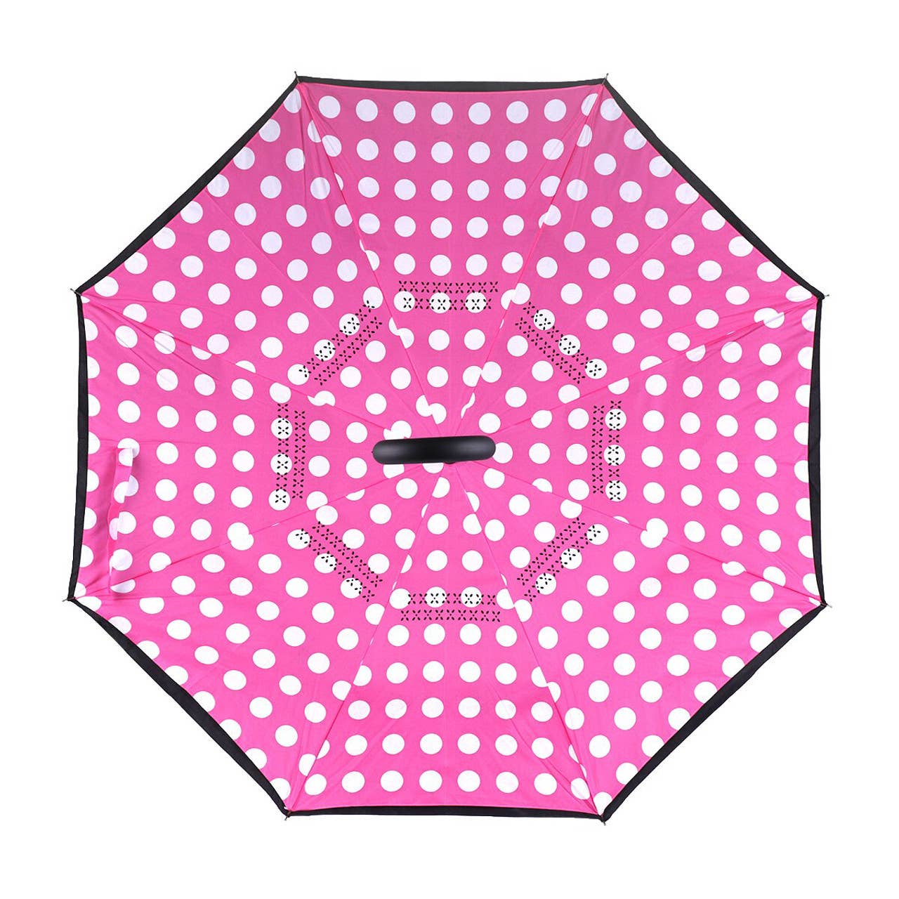 Pink Big Polka Dot Double Layer Inverted Umbrella