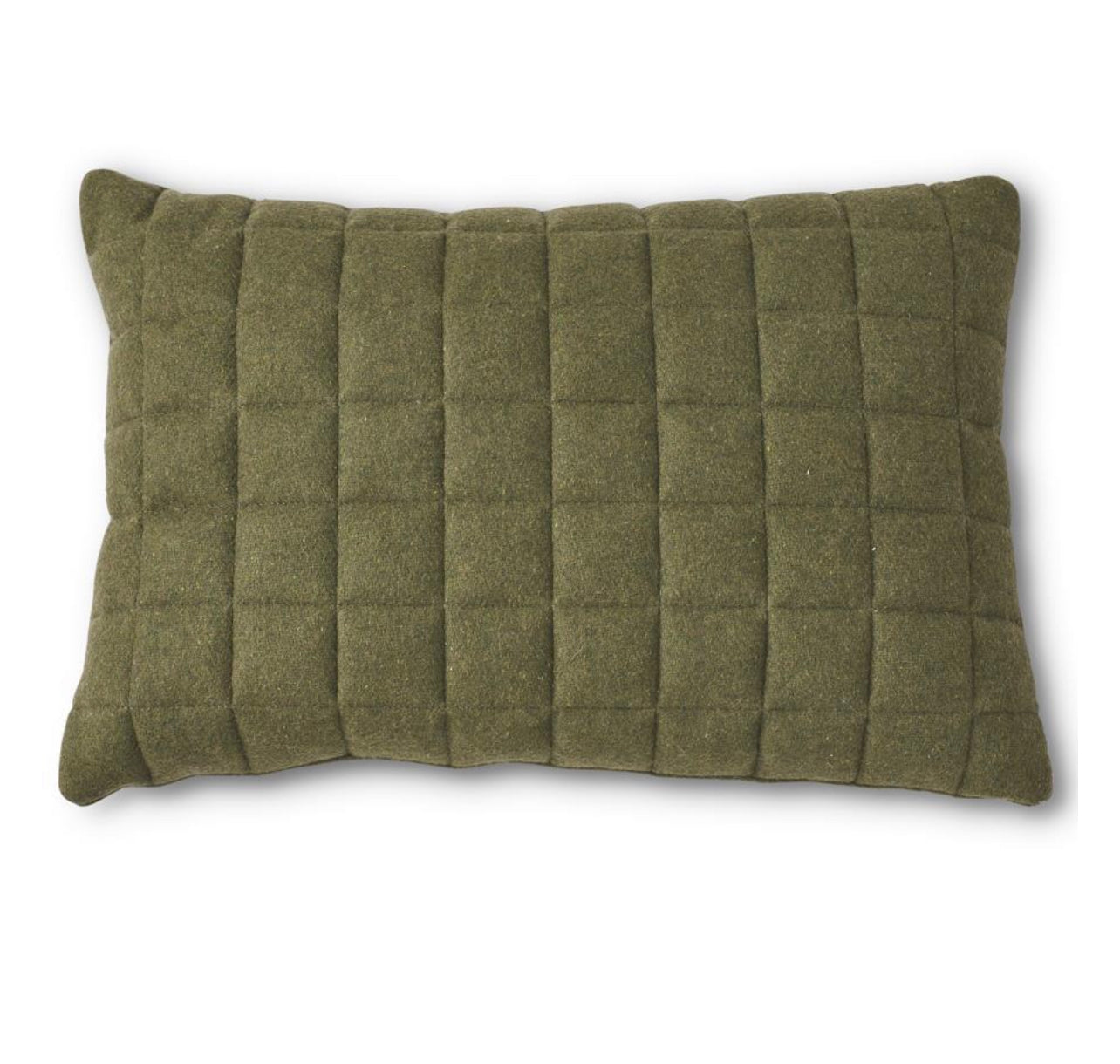 Quilted Rectangular Olive Green Wool Pillow