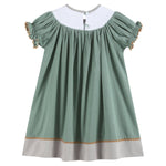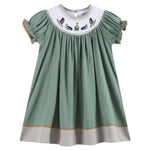 Sage Green Mallard Smocked Bishop Dress! Adorned with cute smocking along the neckline featuring embroidered mallards, this dress is the perfect blend of sweet and playful. In a charming sage green, it's an adorable choice for any day from feeding ducks at the park to playdates with friends.