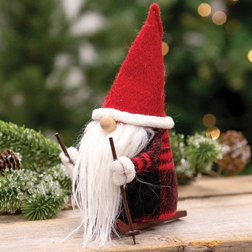 Skiing Santa Felted Ornament is made of red and white felt material and features a skiing design. Ornament holds ski poles for detail and it comes ready to hang for a unique addition to holiday decor. Measures 7" high by 3" wide by 4" deep.